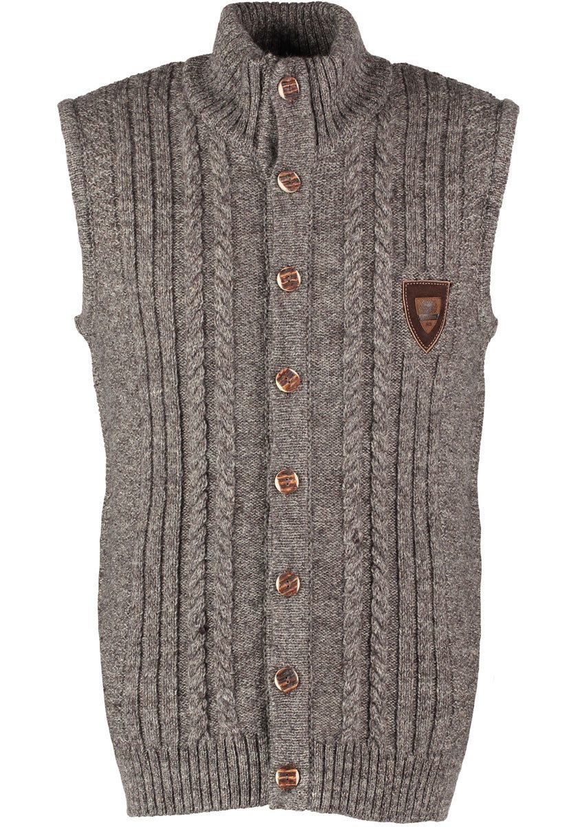 Besondere Merkmale | Regular Fit, ärmellos, Stehkragen, Lederemblem, Zopfmuster |