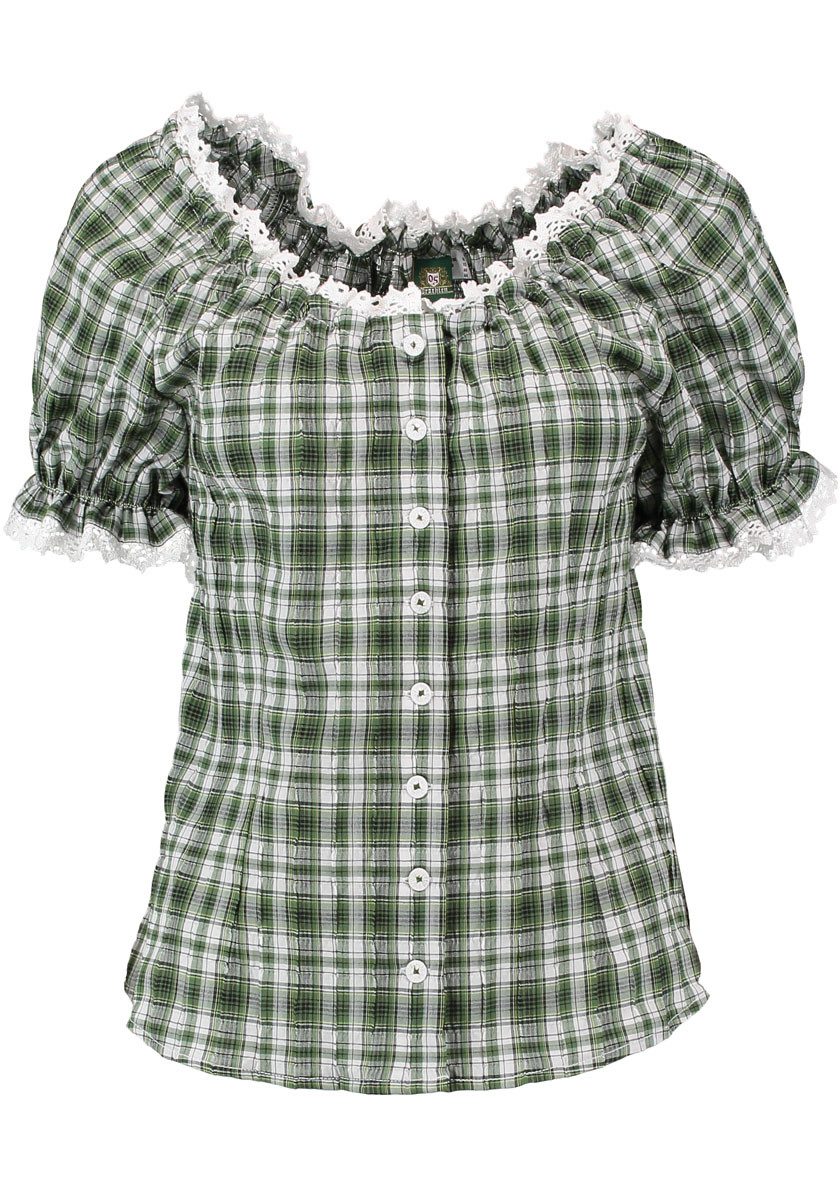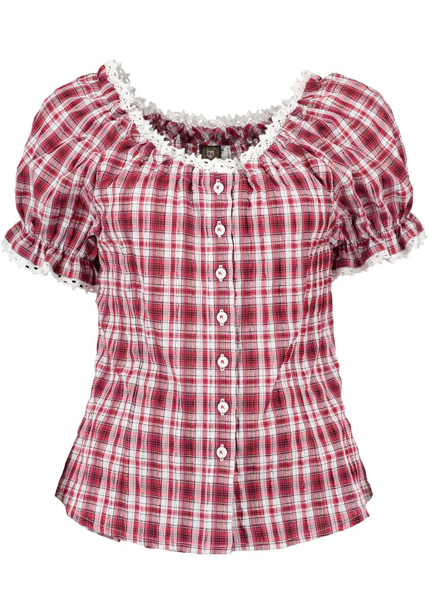 In dieser Bluse steckt Bewegung! Da ist zunächst das Seersucker-Gewebe, das nie ganz glatt sein soll - und damit äußerst pflegeleicht ist. Dazu kommt das kräftige Karo - Sie haben die Wahl aus drei Farben. Und den richtigen Pfiff hat OS Trachten dem Modell mit der weißen Litze um den weiten Ausschntt und an den kurzen Ärmeln gegeben. Von Размер 32 bis 54 in der aktuellen Kollektion.