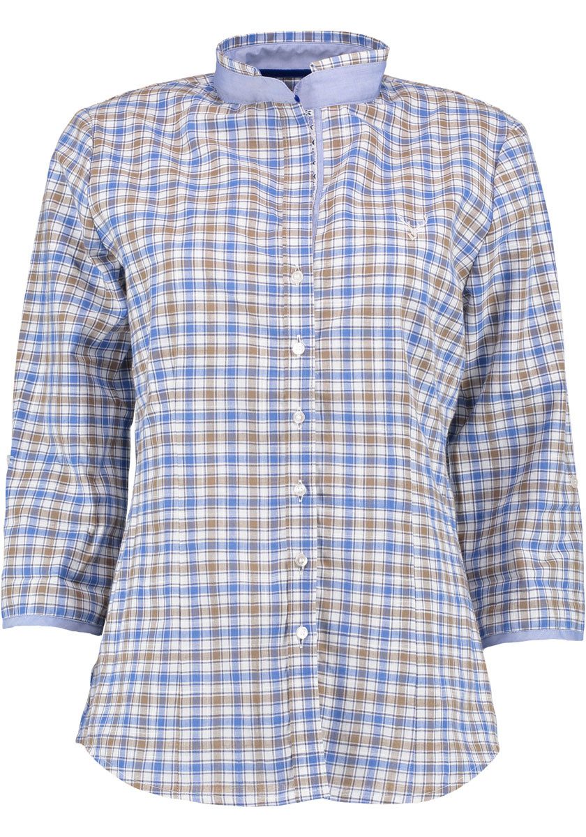 Besondere Merkmale | Langarmbluse mit Stehkragen mit V-Ausschnitt |