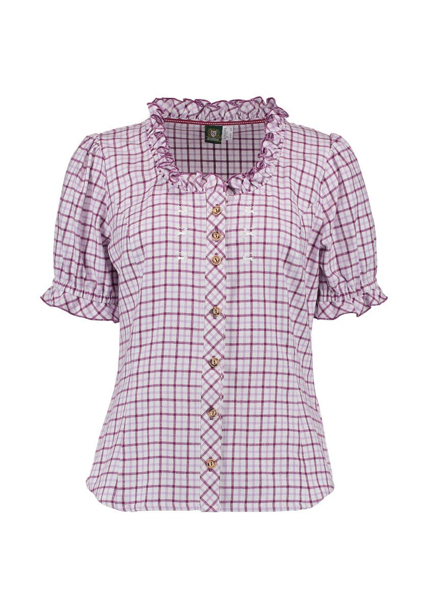 Besondere Merkmale | Tailliert, Rundhalsausschnitt mit Rüschen, 1/2-Arm, Stick, Puffärmel |