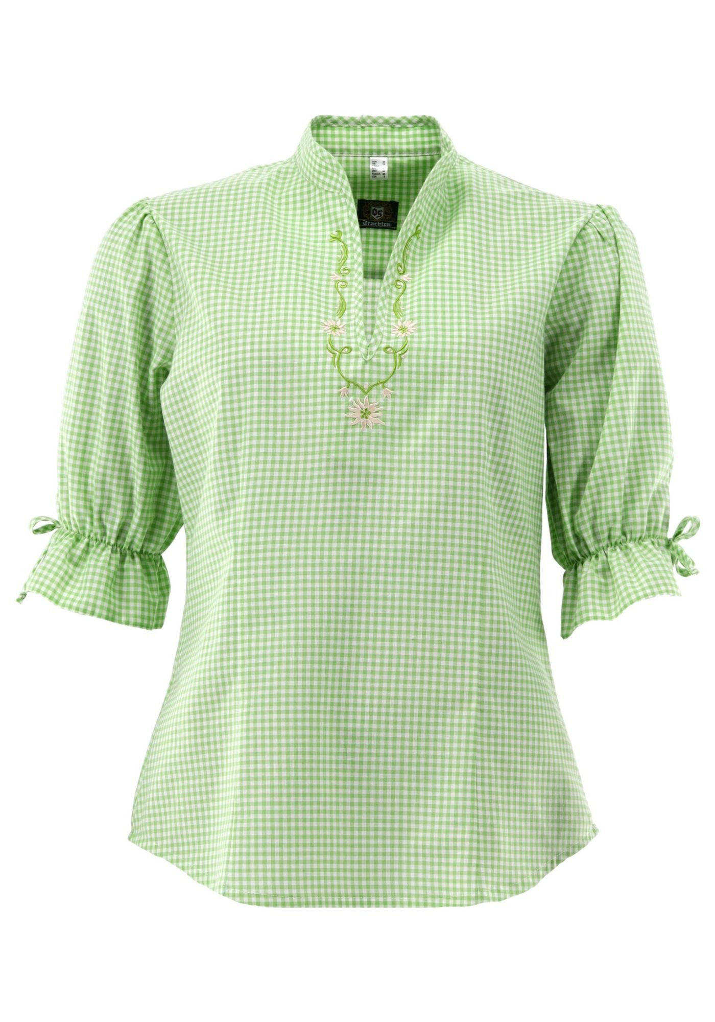 tailliert, Schlupfform, 1/2-Puffärmel, "Edelweiß"-Stick am Ausschnitt