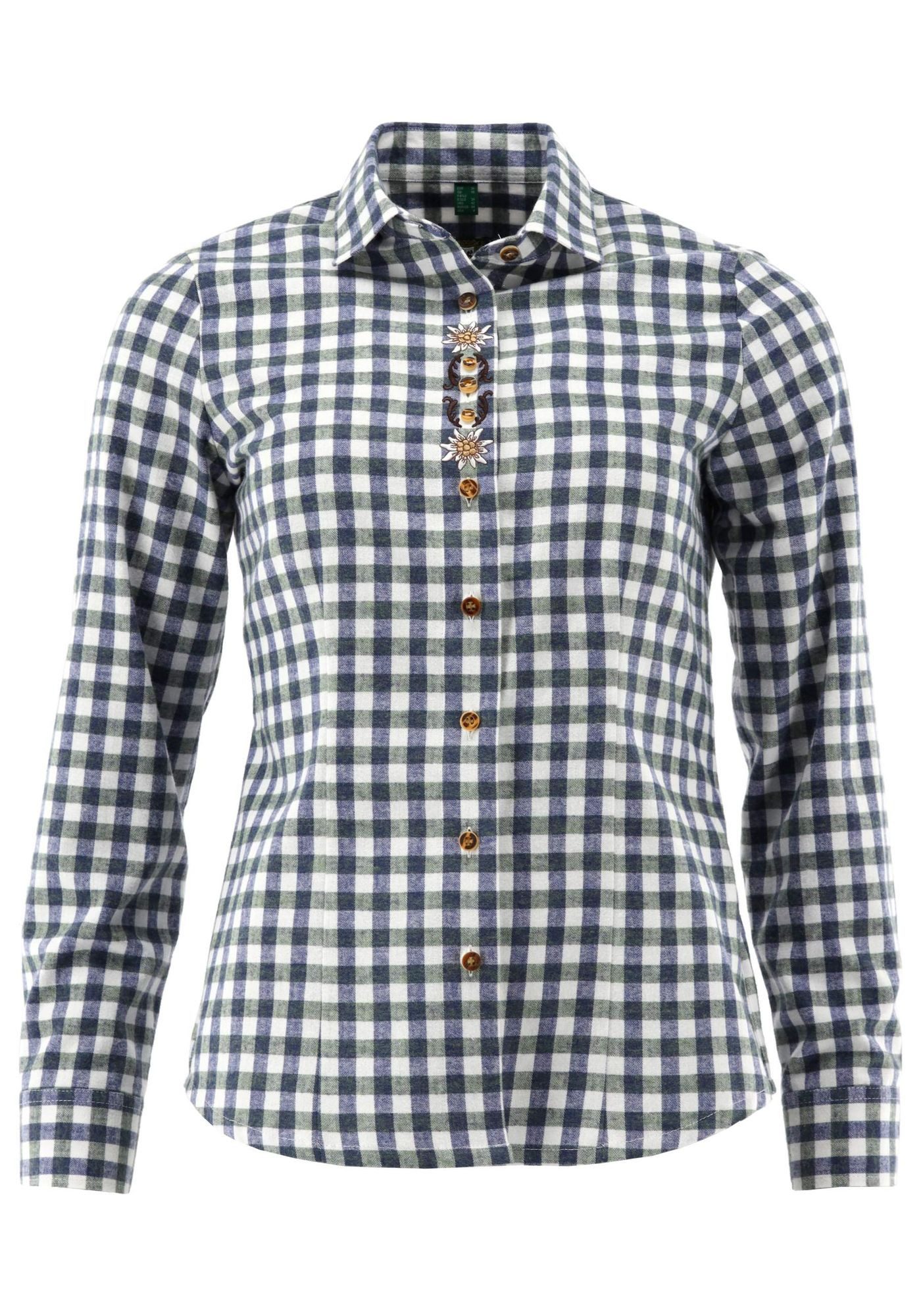 Besondere Merkmale | Tailliert, Haifischkragen, 1/1-Arm, Edelweißstickerei, Flanell |