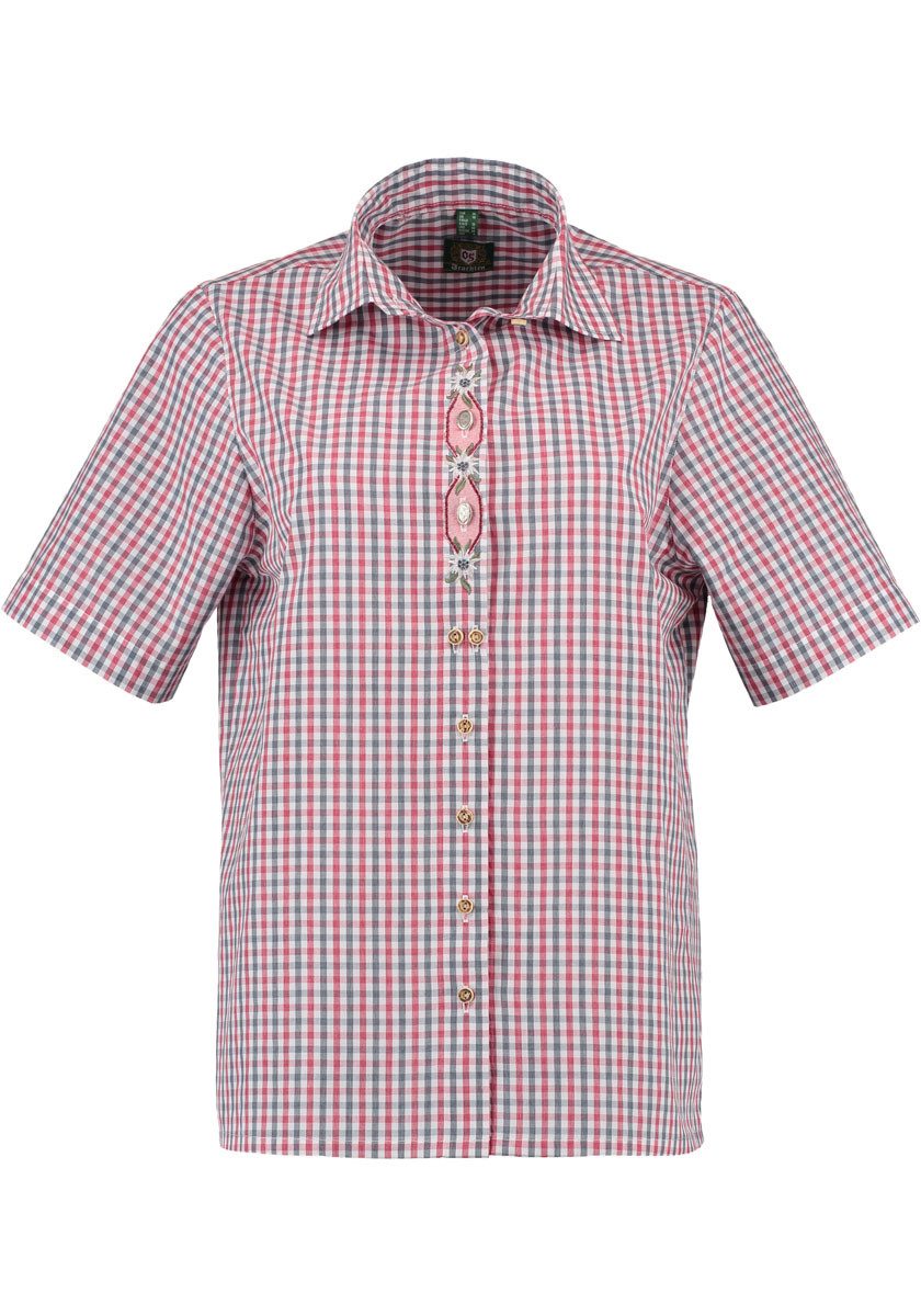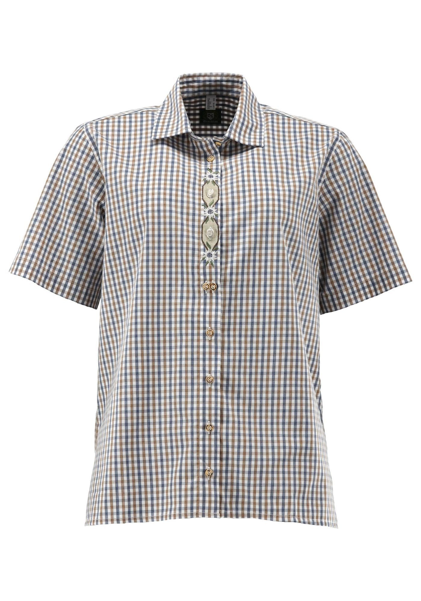 Besondere Merkmale | Damen Kurzarmbluse mit Edelweiß-Stickerei auf der Knopfleiste |