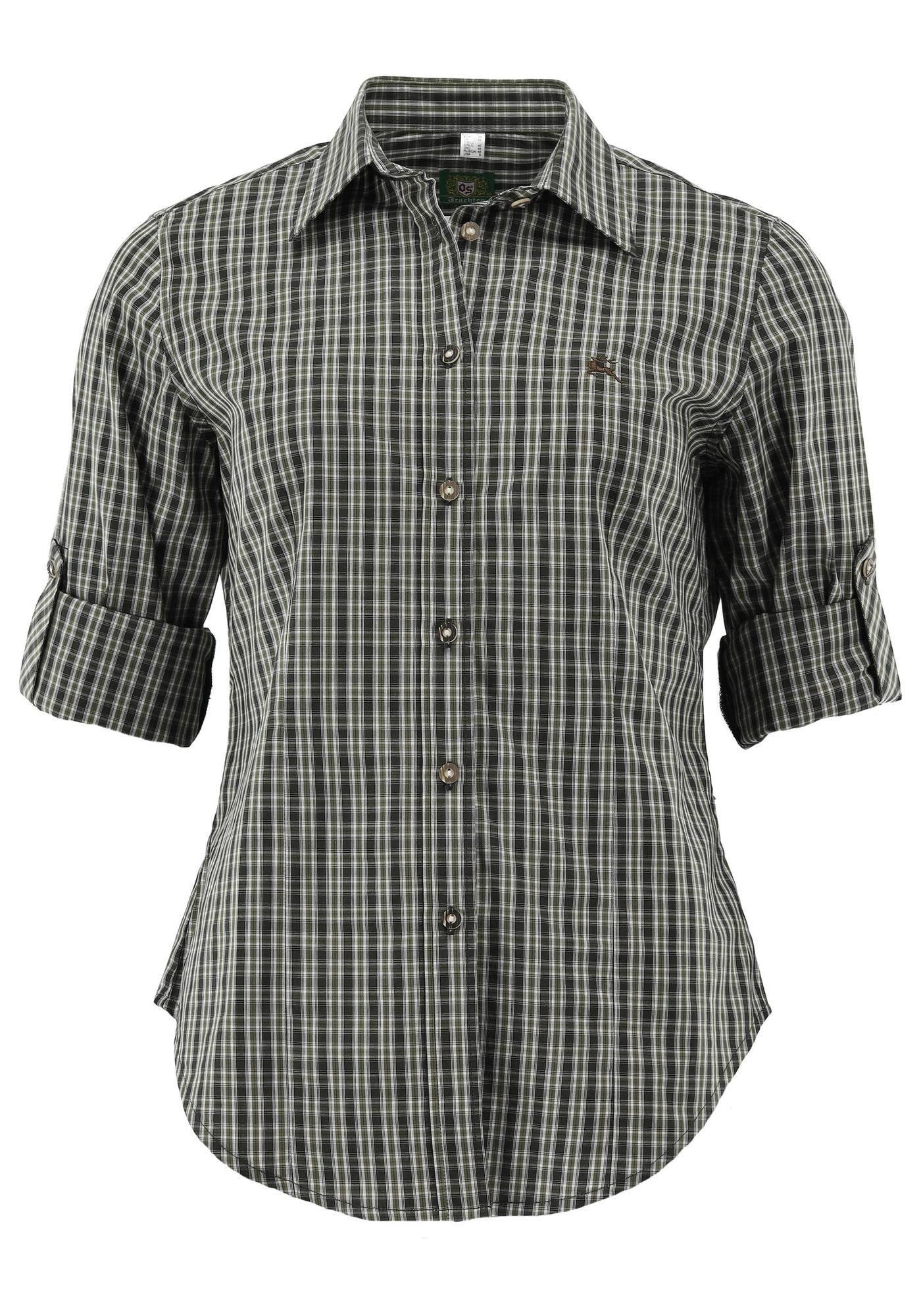 Ein kleines Karo, vier gut kombinierbare Farbtöne, praktische Krempelärmel: Das sind die Zutaten für diese unkomplizierte Jagdbluse von OS Trachten. Der Schnitt lässt (trotz der figurgünstigen Taillierung) viel Bewegungsfreiheit. Und erfreulich leicht fällt auch die Pflege - eine wunderbar weiche Baumwollqualität kommt hier zum Einsatz. Von Размер 32 bis 54 in der aktuellen Kollektion von OS Trachten. Immitierte Hirschhornknöpfe und der kleine Hirschstick verzieren dieses Stück.