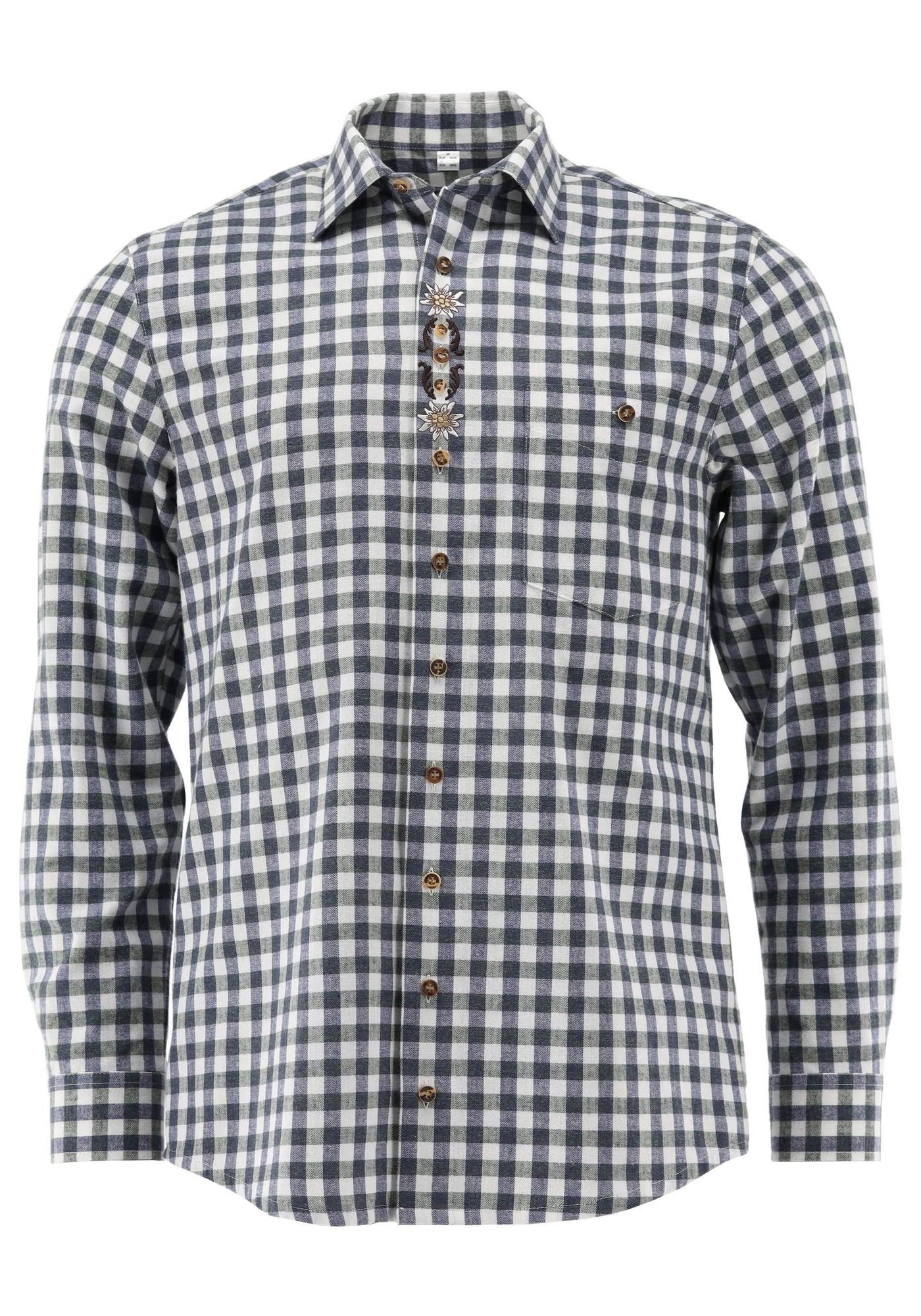 Besondere Merkmale | Regular Fit, Haifischkragen, 1/1-Arm, Flanell-Karo, Edelweißstickerei |