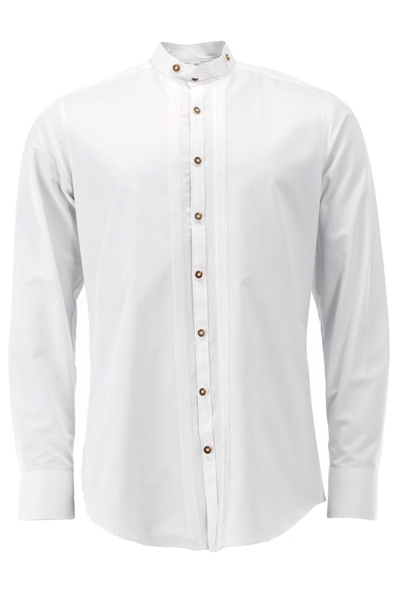 Für die besonderen Anlässe: das weiße Trachtenhemd von OS Trachten mit Stehkragen und schmückenden Biesen entlang der Knopfleiste. Die Knöpfe in Hirschhorn-Optik bilden auf dem weißen Gewebe schöne Kontraste runden das stimmige Gesamtbild ab. Apropos Gewebe: hier hat der Trachtenspezialist auf eine Baumwollmischung gesetzt, denn die ist knitterarm und äußerst pflegeleicht. Mit extra langem Rumpf und extra langen Ärmeln von Kragenweite 35 bis 53.