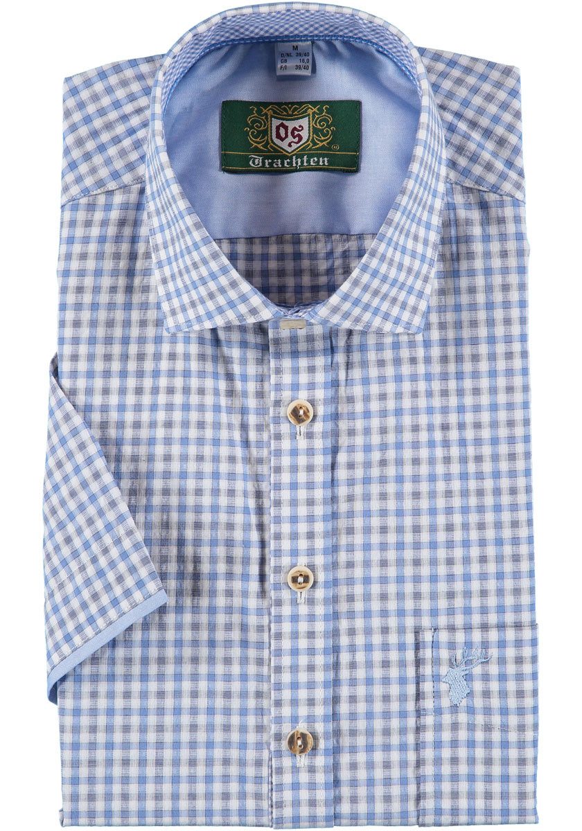 Besondere Merkmale | Herren Kurzarmhemd mit Hirsch-Stickerei auf der Brusttasche |
