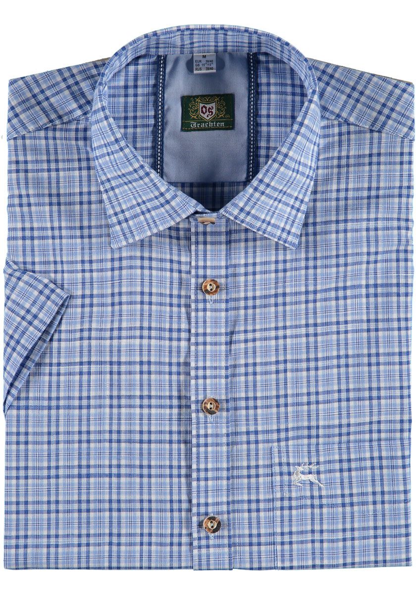 Besondere Merkmale | Herren Kurzarmhemd mit Hirsch-Stickerei auf der Brusttasche |
