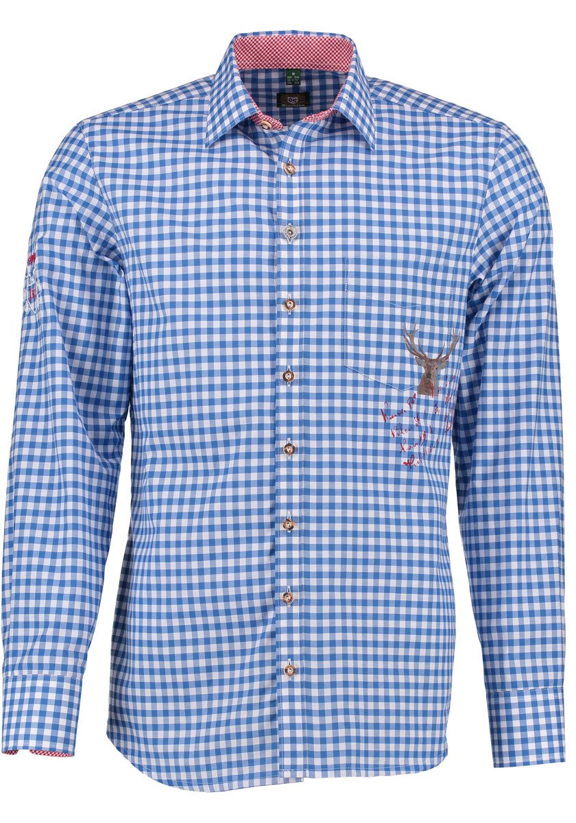 Besondere Merkmale | Herren Langarmhemd mit Hirsch-Stickerei an der Brusttasche |