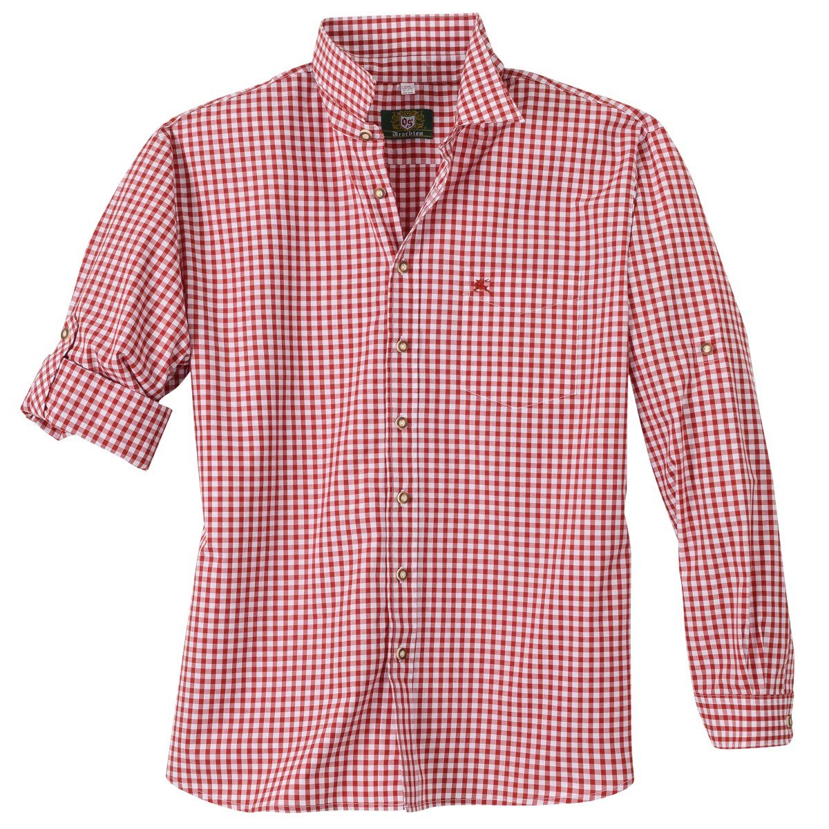 Orbis rot-weiß kariertes Trachtenhemd mit Krempelärmel