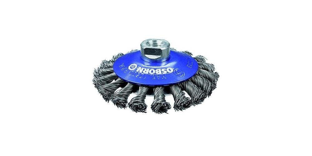 Gezopfte Kegelbürste in Industriequalität zur Aufnahme auf Winkelschleifern. Aggressive Reinigungsleistung Hohe Standzeit Kombiniert die besten Eigenschaften einer Topfb ürste mit denen einer Rundbürste Werkstücke mit großen Flächen und schwer zugänglichen Stellen können hiermit optimal bearbeitet werden TüV-Süd zertifi ziert (Sicherheit geprüft · Produktion überwacht) Entrosten · Entlacken · Entgraten · Schlacke · Silikate · Blaufärbung an komplexen Werkstücken.Впередe technische Eigenschaften:· Anschluss Gewinde· Bauform Kegelbürsten· Besatzmaterial Stahldraht· Zopfart Rose links