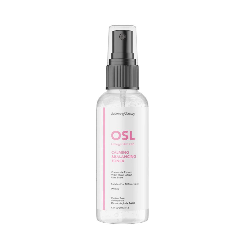 OSL Calming & Balancing Facial Toner (200 ml) von Omega Skin Laboratories ist Ihr Schlüssel zu gepflegter und ausgeglichener Haut. Dieser nach Rosen duftende Toner ist mit Extrakten aus Kamille und Hamamelis angereichert und sorgt für ein entspannendes Erlebnis, ideal für fettige Haut. Kamille lindert Reizungen und Rötungen, während Hamamelis als starkes Adstringens wirkt und überschüssiges Öl kontrolliert. Genießen Sie das luxuriöse Rosenaroma, während es Ihre Haut reinigt und erfrischt und sie gesünder und revitalisiert macht. Genießen Sie Ihre Hautpflegeroutine mit diesem vielseitigen und wirksamen Gesichtswasser von Omega Skin Laboratories.