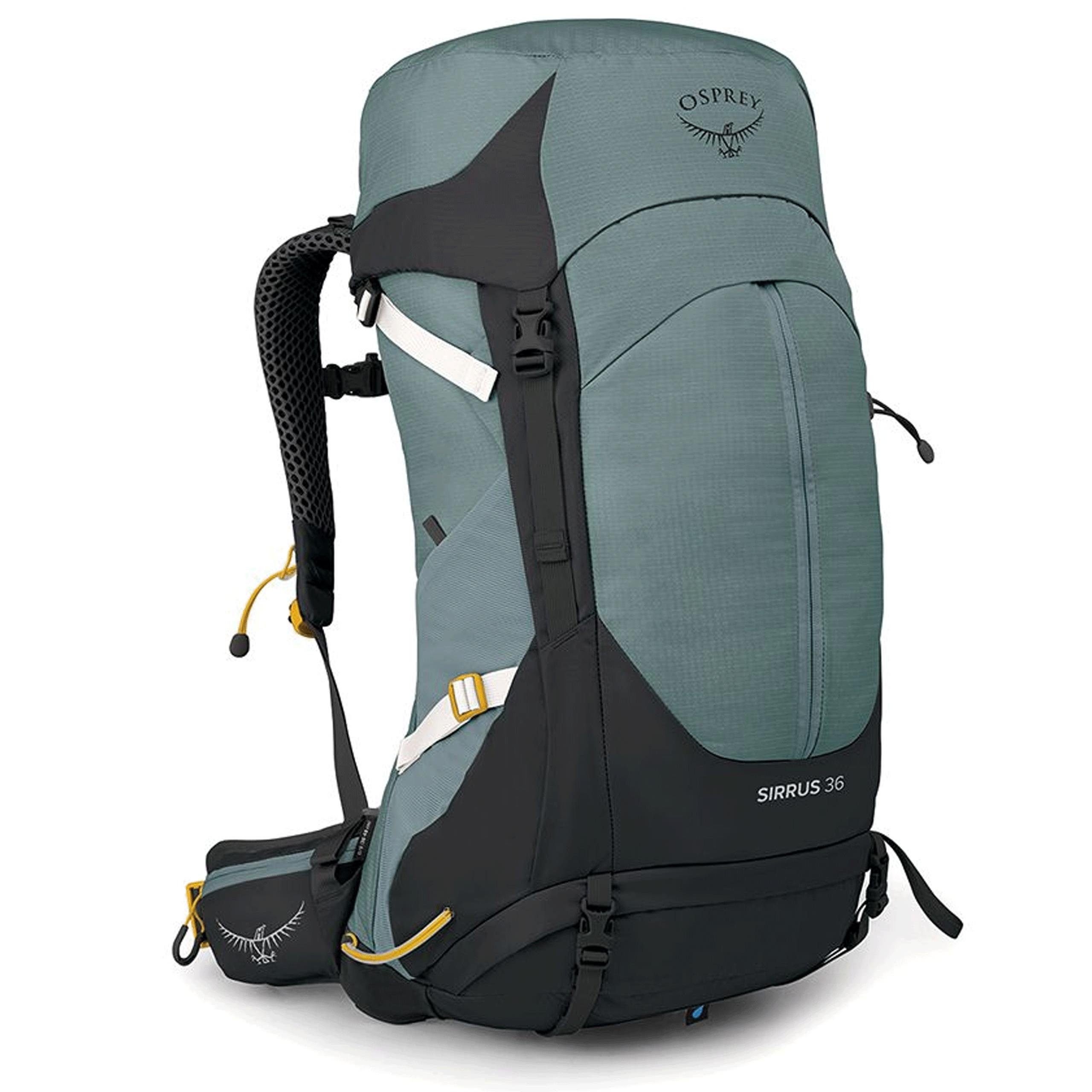 Osprey Sirrus 36 Wanderrucksack/Tourenrucksack Damen mit Netzrücken, 36 Liter Material: 100% Nylon Gewicht: 1500 g Volumen: 36 Liter Maße: 66 cm x 31 cm x 31 cm (l/b/t) Fächer: großes Hauptfach mit Kordelzug einschl. - 1 Trinkblasenfach an der Rückseite - 1Schlafsackfach mit interner Trennwand 1 großes Fach mit Reißverschluss (Deckelrückseite) 1 kleines Fach mit Reißverschluss, (Deckelrückseite) 1 großes Fach mit Reißverschluss (Front) 2 Stretch-Fächer mit Kompressionsriemen (seitlich) 2 Fächer mit Reißverschluss (Hüftflossen) 1 kleines Fach mit Reißverschluss (Boden/Rainvover) robustes Außenmaterial namens Material 210D Nylon Crosshatch leicht wasserabweisend geringes Eigengewicht Frauenspezifischer Schnitt Deckelfach mit Zugang zusätzlicher U-förmiger Reißverschlusszugang an der Front Interne Trennwand mit Reißverschluss unterer Reißverschlusszugang zum Hauptfach AirSpeed Trampolin ähnliches Rückensystem aus Mesh einstellbare Rückenlänge breite und Hüftgurte mit Belüftungsschlitzen anatomisch geformte Schultergurte mit Belüftungsschlitzen Lageverstellriemen Brustgurtschnalle mit Signalpfeife Internes Trinkblasenfach mit seitlichem Auslass Interner Schlüsselanhänger Stow-on-the-Go Befestigung für Trekkingstöcke eine Eisaxtschlaufe abnehmbare Schlafmattenschlaufen Integrierte und abnehmbare Regenhülle seitliche Kompressionsriemen