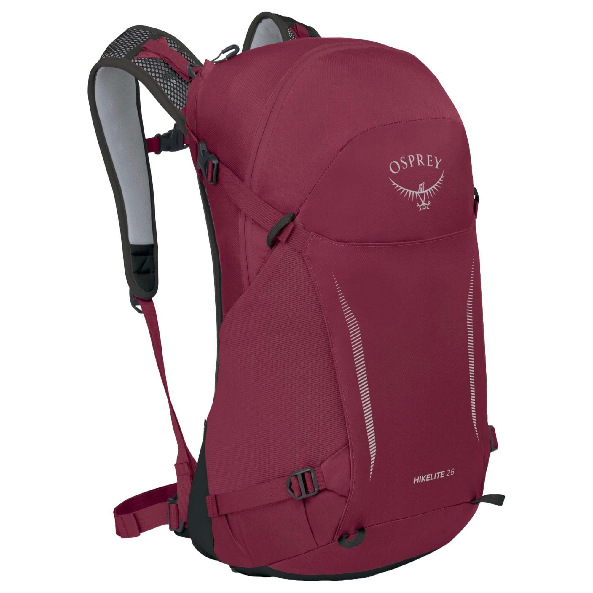 Der Hikelite von Osprey ist der Trekkingrucksack für Jeden, dank seines klaren und übersichtlichen Designs. Technik, Belüftung und Tragekomfort zählen zu den Eigenschaften des Trekkingrucksacks, der sich für ambitionierte oder gelegentliche Wanderungen eignet. Der Hikelite ist die ideale Symbiose aus Alltag- und Outdoor.traditionelles Panel-Loader-Design mit praktischen Reißverschluss zum Hauptfachvordere Stofftasche zum Einschiebenzwei untere Kompressionsriemen für zusätzliche Lastenkontrollegespannte Netzrückenpanel, welches den Rücken entlastetbelüfteter Rückeninklusive Regenhülle, wird im Reißverschlusstasche am Boden verstautextrahohe Stretch-Mesh-Seitentaschen halten den Inhalt sicheraußen liegende Reißverschlusstasche mit Schlüsselclipdoppelte Kompressionsriemen an der Oberseite mit Trekking Stockhalterunginnere Trinkblasenhülle mit Schlauchanschluss im Rückenpanel und Osprey Hydraclip zum einfachen Einhängenverstellbarer und abnehmbarer Brustgurt mit Rettungspfeife