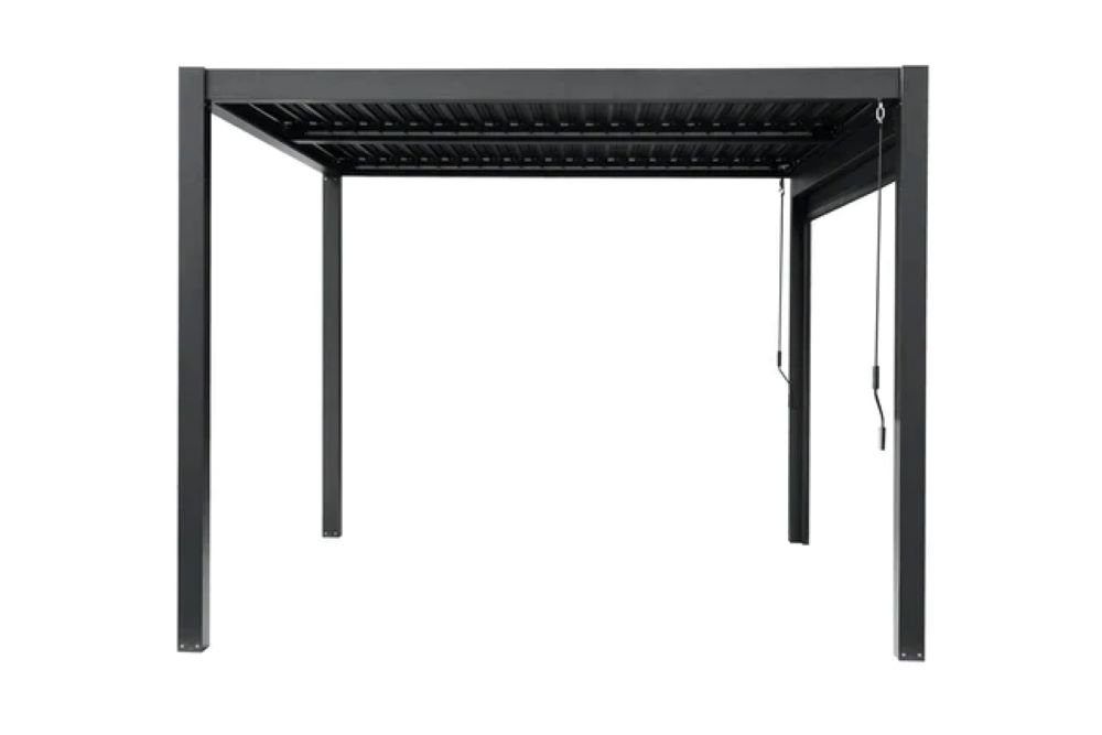 Aluminium Pergola-Pavillon mit Lamellendach 3m x 3m Unsere hochwertigen Aluminium Pergola-Pavillons vereinen eine edle Optik mit ausgezeichneter Funktionalität und höchster Stabilität. Ausgestattet mit einem bequemen und stabilen Aluminium-Lamellendach, welches mittels einer Kurbel geöffnet und geschlossen werden kann, um eine besser Luftzirkulation oder Sonnenschutz zu erzielen. Bei uns sind die Pergola-Pavillons aus pulverbeschichtetem Aluminium in der Farbe anthrazit gefertigt und lassen sich perfekt als Garten oder Terassen Pergola/Pavillon integrieren. Die stabile Konstruktion aus 10x10 cm starken Pfosten und das verstellbare Lamellendach bescheren zu jeder Jahrezeit eine Wohlfühlatmösphäre im eigenen Garten. Ob als Schattenspender, Sichtschutz, Schutz vor leichtem Regen oder als edle Garten-Ausstattung, unser Pergola/Pavillon wird Sie stets zuverlässig schützen. Der Aufbau ist aufgrund der durchdachten Materialwahl, der unkomplizierten Konstruktion und Dank des mitgelieferten Montagematerials einfach durch zwei Personen zu bewerkstelligen. Die Pfosten werden auf den mitgelieferten Metallfüßen verschraubt, welche dann auf dem Terrassenbelag oder Gartenfundament fixiert werden (Das Befestigungsmaterial zur Montage auf der Terrasse ist inklusive). Das verstellbare Lamellendach besteht aus zwei Teilen und kann jeweils einzeln, von Hand, mit einer Kurbel geöffnet bzw. geschlossen werden. -Размер (Breite x Tiefe): 290 x 290 cm, Höhe: 230cm -Konstruktion aus Aluminium -Ausführung: anthrazit -Pfostenstärke: 10 x 10 cm -Windschutzverkleidungen optional erhältlich, diese werden schnell und einfach zwischen den Pfosten befestigt -Die Bodenbefestigung erfolgt mittels Trägerplatten, die aufgeschraubt werden (passende Schrauben und Dübel sind inklusive) -Die Entwässerung des Pavillons erfolgt über die vier Pfosten (über die einzelnen Lamellen, die geschlossen jeweils eine eigene „Regenrinne“ ergeben, läuft das Wasser auf die oberen Träger und von dort zu den Pfosten, von wo das Wasser nach unten läuft , siehe hierzu auch Seite 7 der Montageanleitung) -Gesamtgewicht: ca 148 kg -Das Dach besteht aus Lamellen und kann mittels einer Kurbel aufgestellt werden, um so eine Luftzirkulation zu gewährleisten -Schneelast: max. 50 kg pro m² -Packmaße: 285 x 85 x 47 cm - 148 kg für Pergola-Pavillon 3m x 3m Zusätzlich können Sie einen passenden und hochwertigen Wind- und Sichtschutz, als Markise zum Ausziehen, aufrüsten und hiermit bis zu vier Seiten abdecken (jeweils eine Seite/Markise).