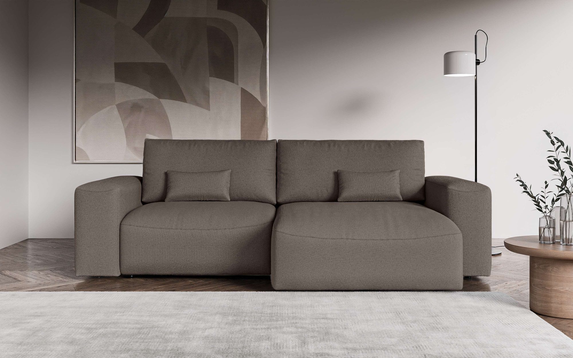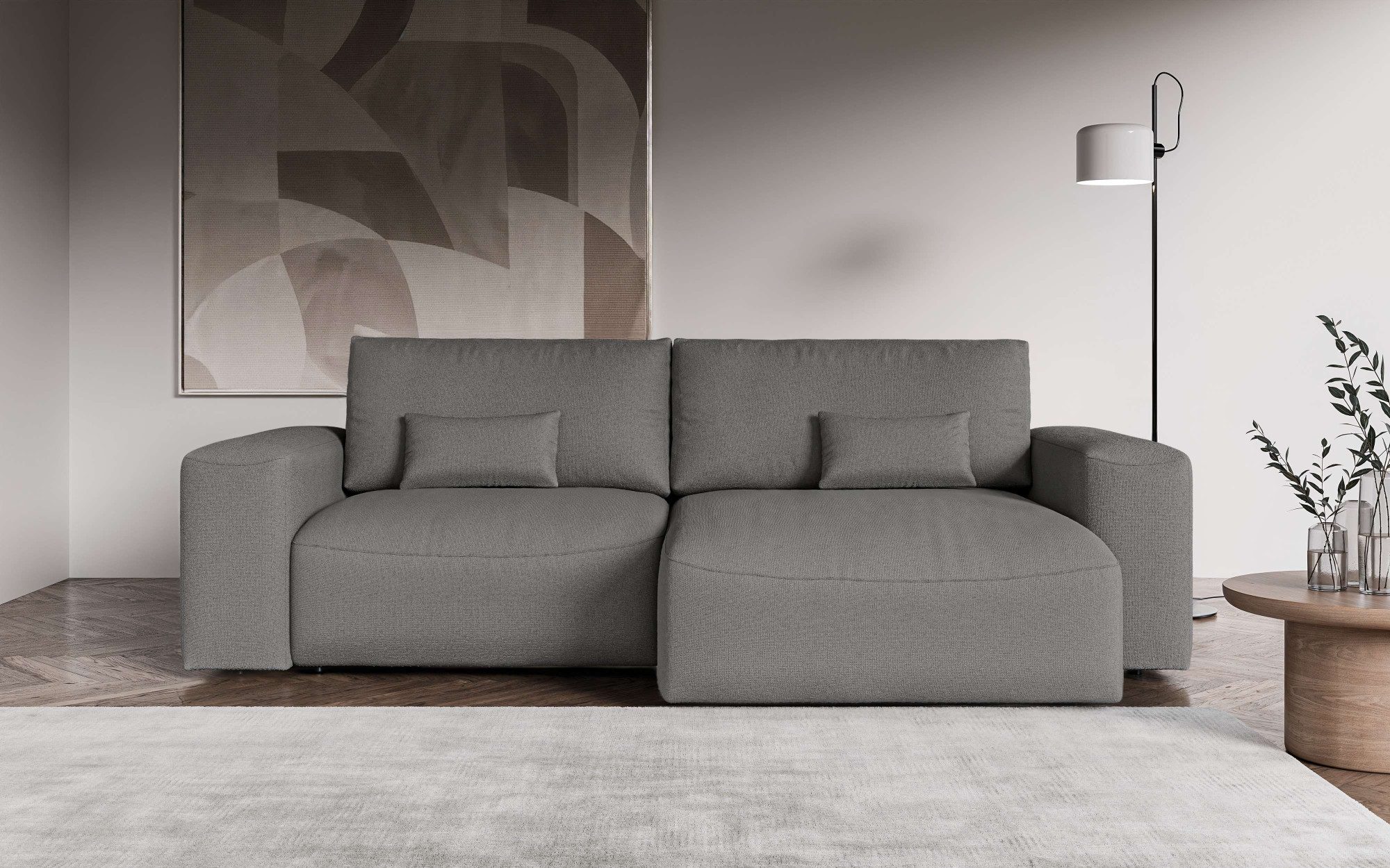 Durch die hochwertige Wellenunterfederung wird die Sitzfläche des Ecksofas »MATTS Schlafsofa mit Bettkasten, Maße B/T/H: 265/159/89 cm« von OTTO home gut gefedert und bleibt dauerhaft elastisch. Zudem handelt es sich hierbei um ein echtes Platzwunder, da es mit einem ausziehbaren Bettkasten versehen und somit Schlaf- und Ruhezone in einem ist. Was dir auch zu Gute kommt, ist das passende Rückenkissen, das nicht nur ein schönes Deko-Element ist, sondern auch für noch mehr Komfort sorgt. Beim Ecksofa befindet sich die Recamiere, von vorne betrachtet, auf der rechten Seite. Die maximale Belastbarkeit pro Sitzplatz liegt bei einem Gewicht von 130 Kilogramm. Der strukturierte Bezug überzeugt durch seine pflegeleichte und hautsympathische Eigenschaft. Aus Liebe zum Detail wurde dieses Modell von Hand angefertigt.