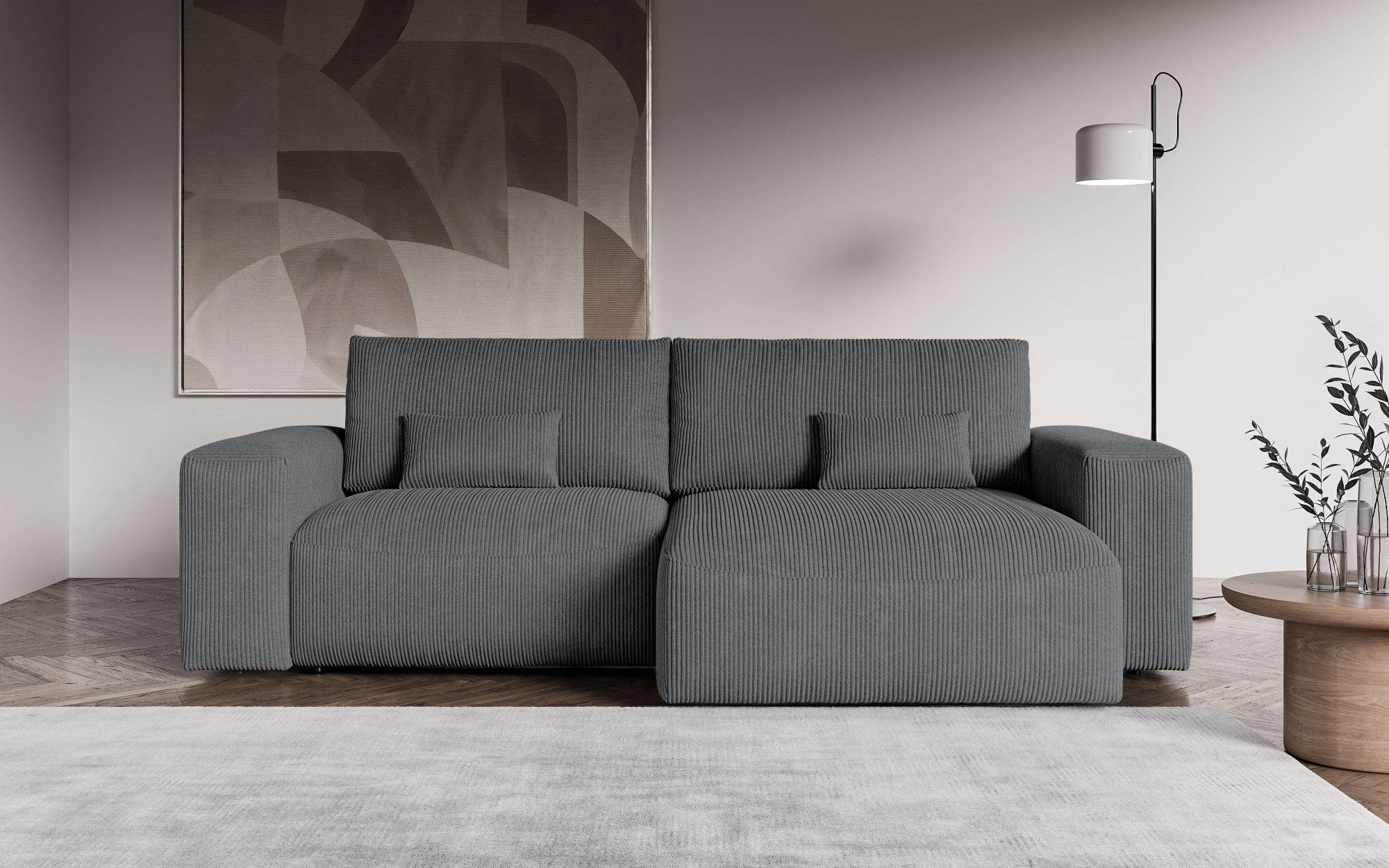 Du fragst dich, wie sich das Möbelstück kombinieren lässt? Hier eine kleine Inspiration für dich: Die Ästhetik des modernen Stils ist reduziert und strahlt eine schlichte Eleganz aus. Um Akzente zu setzen, eignen sich beispielsweise farbige Vasen gut, die entweder mit Blumen oder auch mit bunten Lichterketten dekoriert werden können.