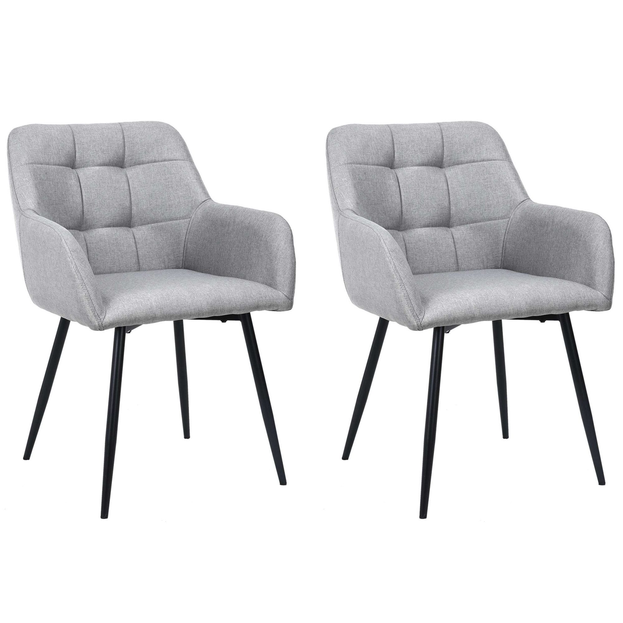 Der Stoff sorgt für ein warmes und angenehmes Sitzgefühl. Das Gestell aus Metall wirkt widerstandsfähig und bringt die nötige Stabilität mit sich. Wenn der Stuhl mal Flecken abbekommt, kannst du ihn mit einem trockenen Tuch abwischen.