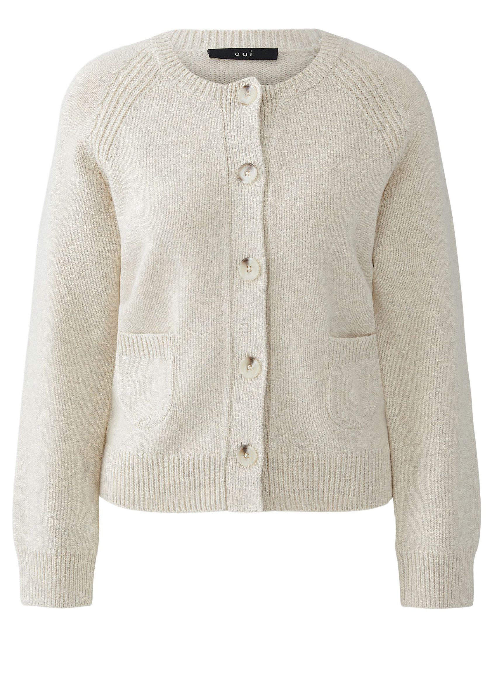 Weiche Wollmischung mit Modal, glatt gestrickt Schmal geschnitten, leicht verkürzt Raglanform mit durchgehender Knopfleiste Kleine aufgenähte Taschen Все Strickbündchen sind mit Elasthan verstärkt