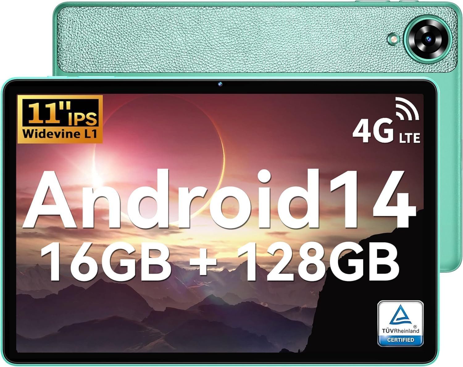Tablet 11 Zoll Android 14 Tablet 16 GB RAM + 128 GB ROM (1 TB TF), Tablet Touchscreen Prozessor mit 8 Kernen, 2,4G/5.0G WiFi6 5 MP + 13 MP 8000 mAh BT5.0 GMSzertifiziert 2 in 1