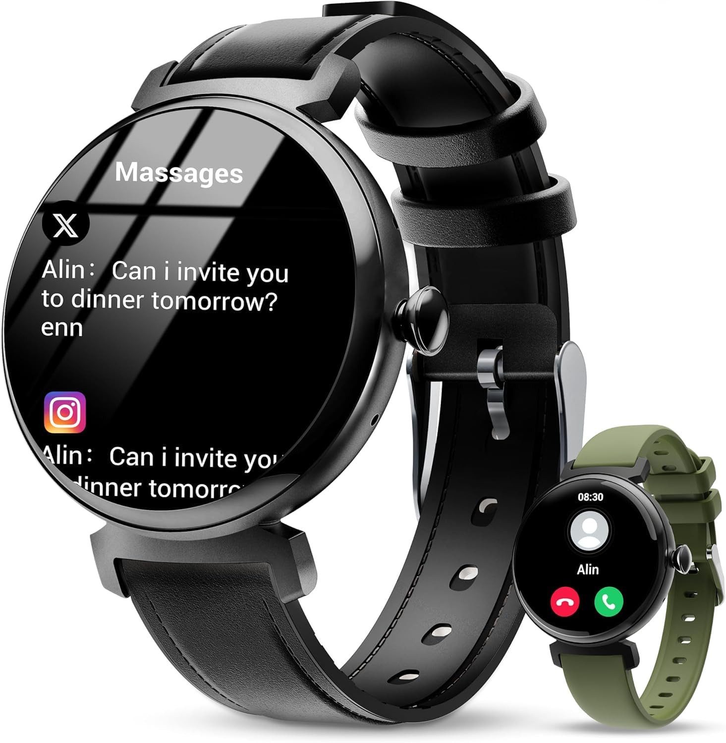 Die 1,04 Zoll große Touchscreen-Smartwatch überzeugt mit elegantem Metallgehäuse und zwei austauschbaren Armbändern. Für Alltag, Büro oder Sport optimal geeignet.