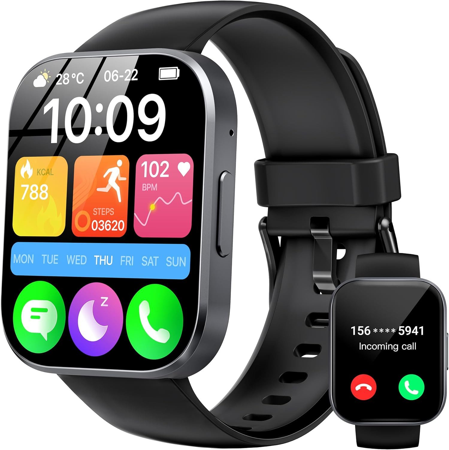 Dank integriertem Lautsprecher und Mikrofon können Anrufe direkt über die Uhr getätigt oder entgegengenommen werden. Über Bluetooth 5.3 ist eine stabile und klare Verbindung gewährleistet. Push-Benachrichtigungen von sozialen Medien oder Messengern erscheinen ebenfalls direkt auf dem Display.