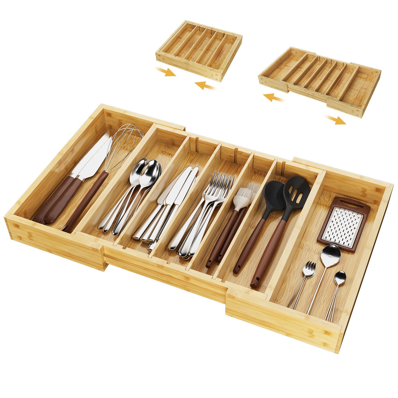 Der Besteckhalter ist erweiterbar von 32.2 cm bis 51.5 cm breit. Der ausziehbare Organizer passt sich flexibel an Ihre Schubladengröße an und bietet zusätzlichen Stauraum