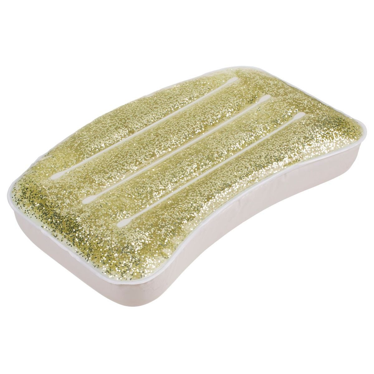 Verbringen Sie eine entspannte Zeit in der gemütlichen Badewanne und legen Sie den Kopf dabei ab, sodass Sie sich vollständig bei Ihrem Bad entspannen können. Dieses Badewannenkissen mit ansprechender Glitzer-Optik hilft Ihnen dabei. Die Kopfstütze ist mit zwei Saugnäpfen für eine optimale Befestigung ausgestattet. Das Kissen an sich verfügt mit seiner Bemaßung von ca. 28 x 18 x 4 cm über eine Gel-Füllung und eine weiße Grundfarbe. Vorteil dieser Stütze ist definitiv auch ihr kompaktes Format, dadurch können Sie auch im Wellnessurlaub oder auf Reisen für maximale Entspannung im Badezimmer sorgen.