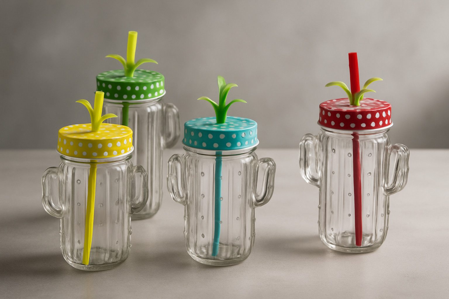 Dieses wunderschöne Trinkgläser-Set im modernen Kaktus-Design ist nicht nur ein echter Hingucker, sondern auch besonders praktisch. Die Einmachglas-Optik mit Henkel, farbenfrohen Trinkhalmen und Metallschraubverschluss sorgt für ein sommerliches Flair auf jeder Feier. Dank des eckigen Strohhütten-Tabletts lassen sich die Gläser stilvoll servieren und transportieren – ideal für Gartenpartys, BBQs oder Picknicks!