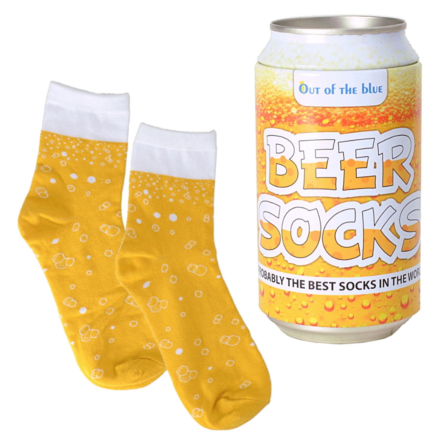 Socken gehören zur Grundausstattung im Kleiderschrank und sind nicht nur in der kalten Jahreszeit ein unverzichtbares Kleidungsstück. Die Socken sind in den Farben gelb und weiß gestaltet. Der gelbe Teil soll das Bier darstellen, während der weiße Teil die Schaumkrone ist. Auf dem gelben Bereich sind zudem weiße Luftblasen zu sehen, welche den Anschein auf ein prickelndes Blondes noch erhöhen. Um die Socken nicht einfach so jemandem schenken zu müssen, werden sie in einer schönen Geschenkverpackung in Form einer Bierdose versendet. Ein Muss für alle Biertrinker um ihrem Lieblingsgetränk Respekt zu zollen. Die Krüge (oder Socken?) hoch! Die Bierdose hat in etwa eine Höhe von 12,5 cm. Das Paar Bier Socken ist in jedem Fall ein ausgefallenes Geschenk für junge Männer zum Oktoberfest.