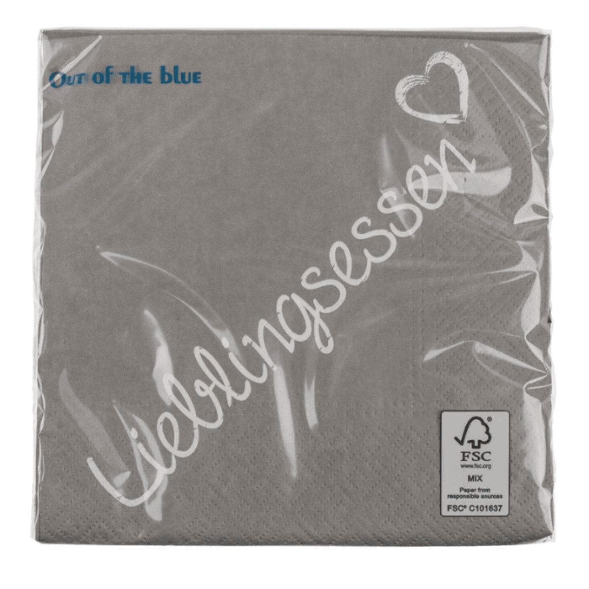Graue Papier-Servietten, Lieblingsessen, mit weißer Schrift, ca. 33 x 33 cm, 3-lagig, 20 Stück im Polybeutel