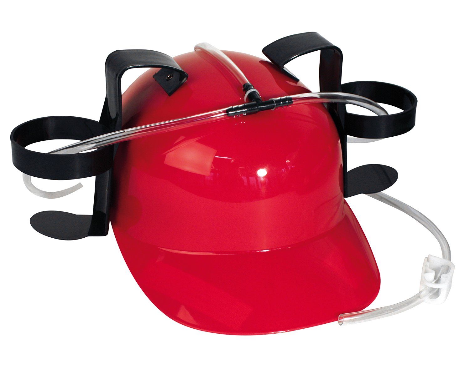 Das perfekte Gimmick für deinen Suff-Wandertag. Stelle einfach 2 Dosen oder Flaschen in den Trinkhelm und führe die Schläuche ein. Nun kannst du gemütlich Bier trinken und hast die Hände für den Bollerwagen und Grillgut frei. Der Bierhelm macht Spaß und ist ein lustiges Accessoire für deine Sauftruppe beim Junggesellenabschied, Vatertag oder Geburtstag.