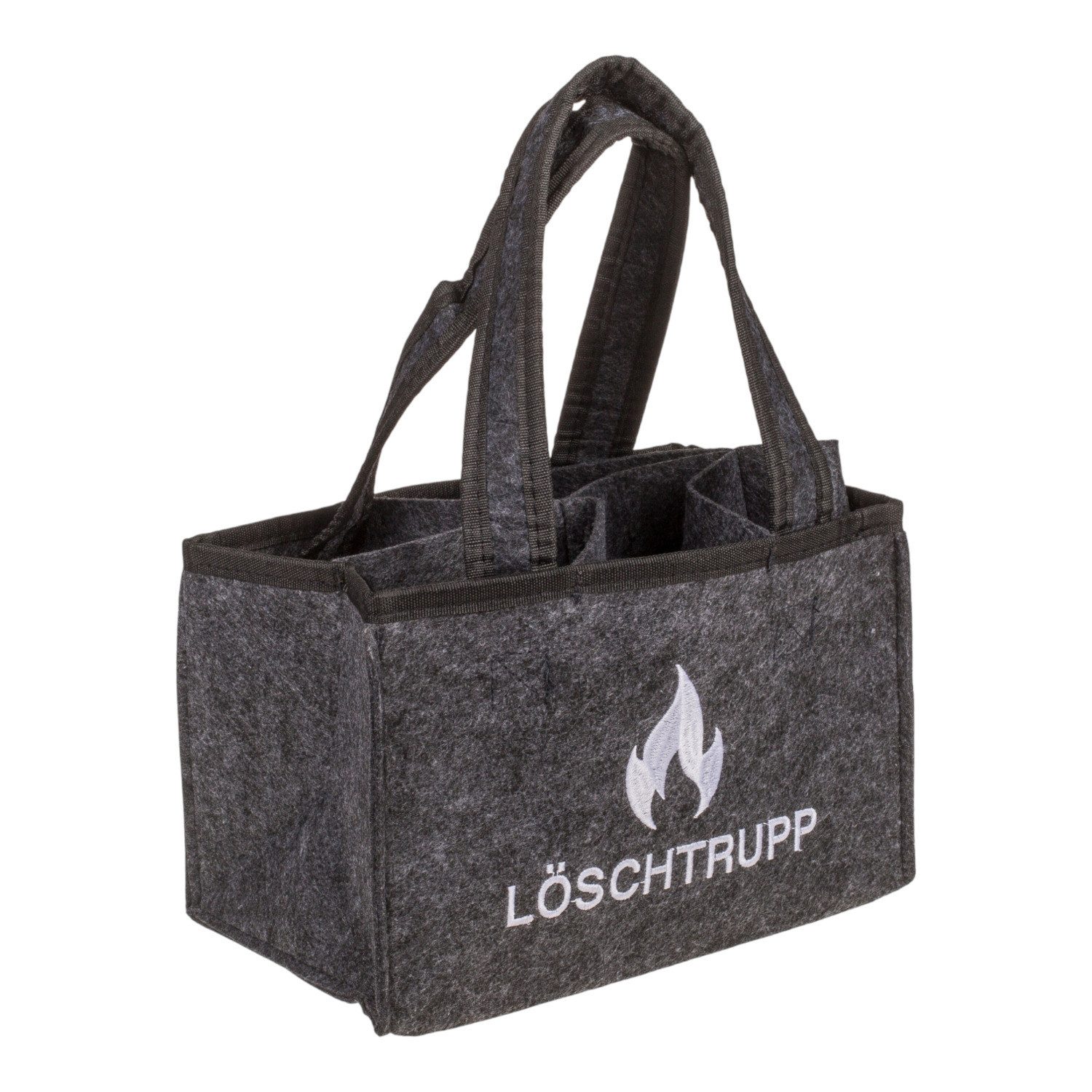 Die Filztragetasche transportiert bis zu sechs Flaschen sicher. Mit Löschtrupp-Spruch und gestickter Flamme wird sie zum Party-Highlight. Ideal für Flaschen.