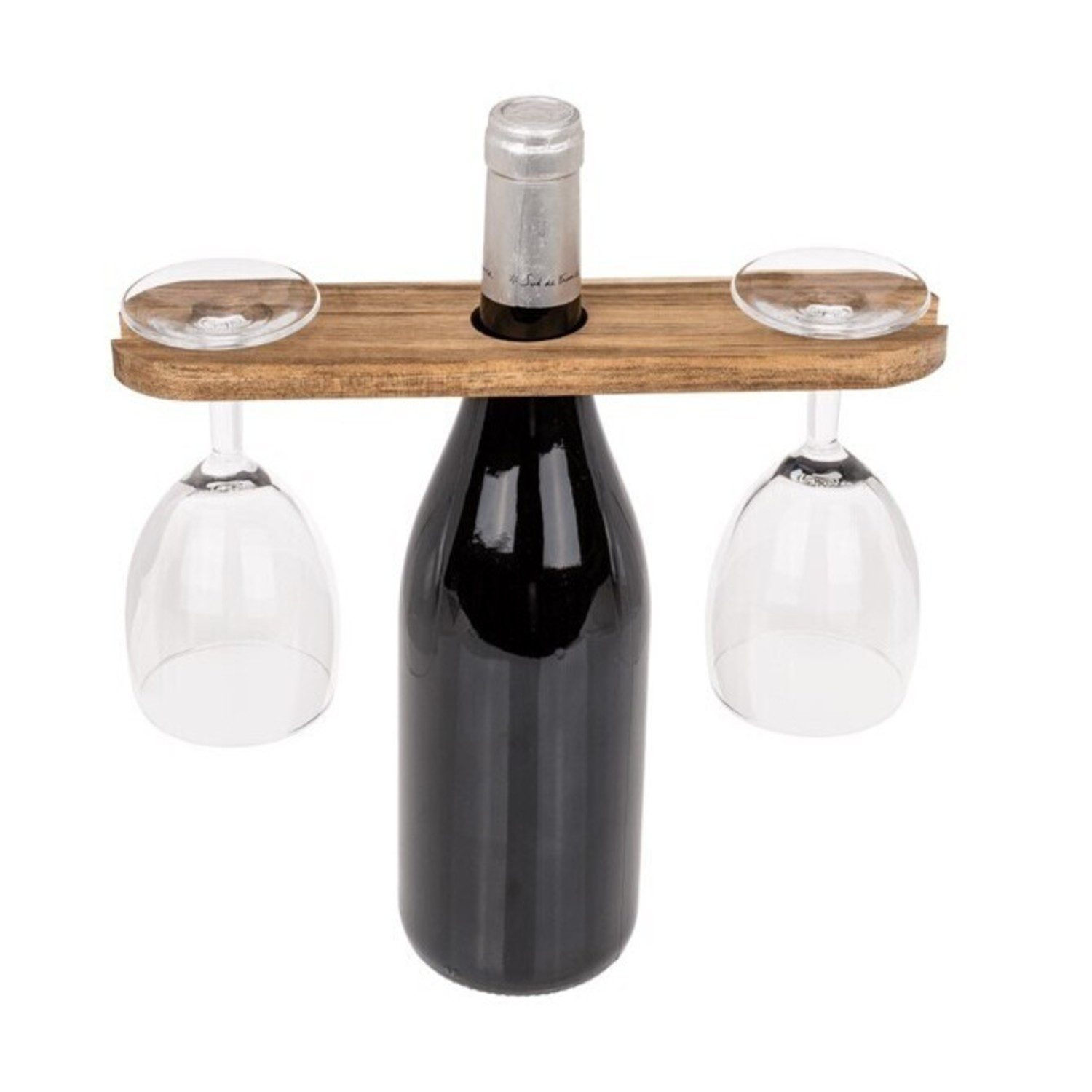 Der Wein-Butler hält zwei Weingläser auf deiner Weinflasche. Flasche und Gläser sind nicht im Lieferumfang enthalten!