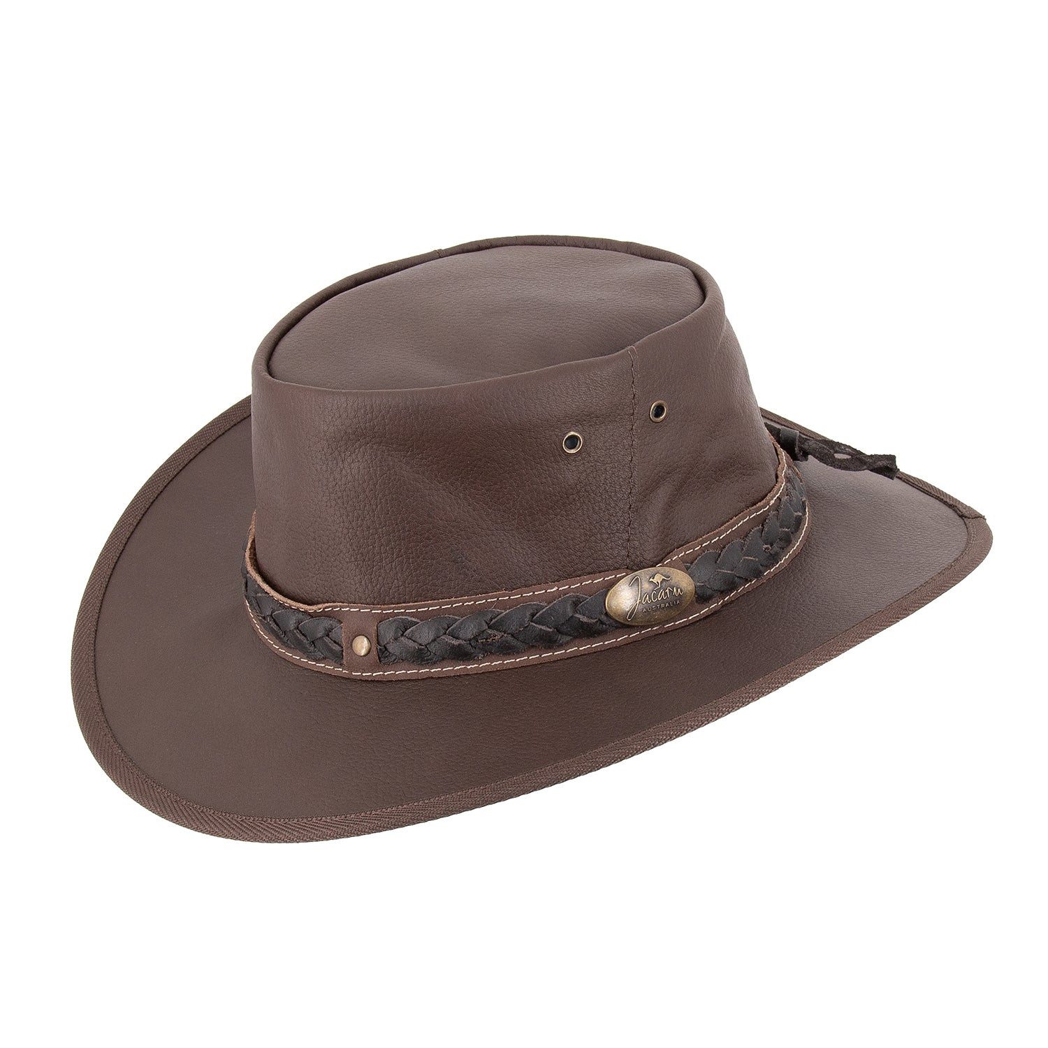 - Den weiten Weg aus Down Under kommt dieser Outbacker zu uns. Dort werden bei Jacaru seit 1969 in Handarbeit individuelle Outdoorhüte aus verschiedenen Lederarten gefertigt. Durch das Naturprodukt Leder ist im Grunde jeder Hut ein Unikat.