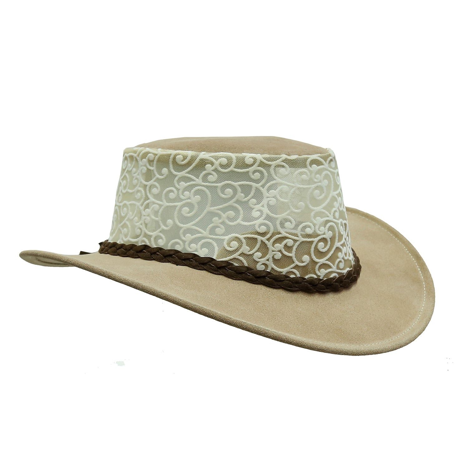 LEICHT UND LUFTIG - Cowboy Leder-Hut, Sommerhut für Damen und Herren. Mit Netz Hut-Block für optimale Luftzirkulation.