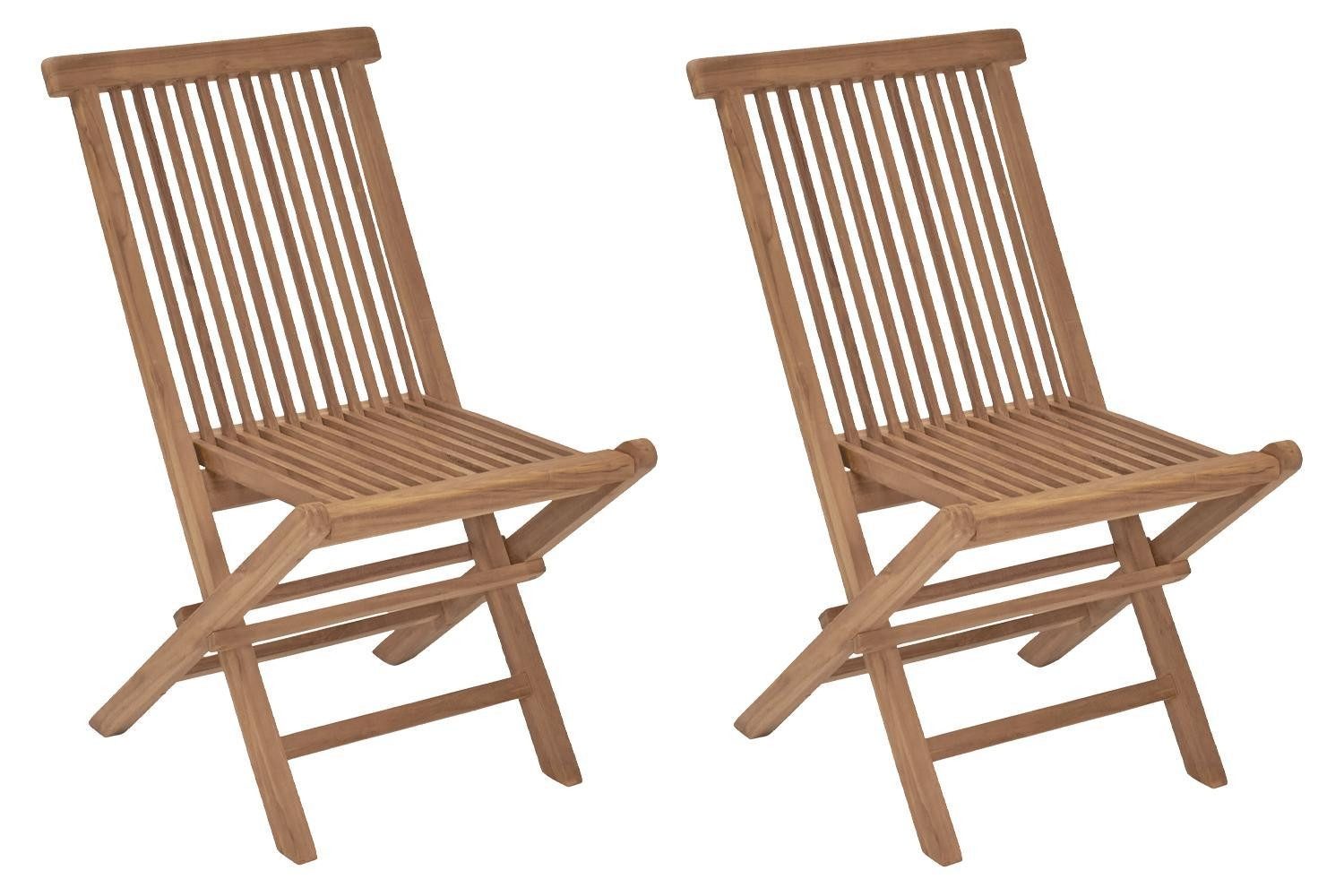 Dieses 2er Set Gartenstühle RIVA von Outdoor ist aus massivem Teakholz gefertigt. Die Stühle sind klappbar und lassen sich platzsparend verstauen. Mit einer Breite von 43 cm, einer Höhe von 89 cm und einer Tiefe von 47 cm passen sie ideal auf Balkon, Terrasse oder in den Garten. Das Teakholz ist robust, witterungsbeständig und von Natur aus gut geschützt. Im Laufe der Zeit kann eine silber-graue Patina entstehen. Zur Farbauffrischung empfiehlt sich gelegentliches Nachölen mit Teakholz-Öl.