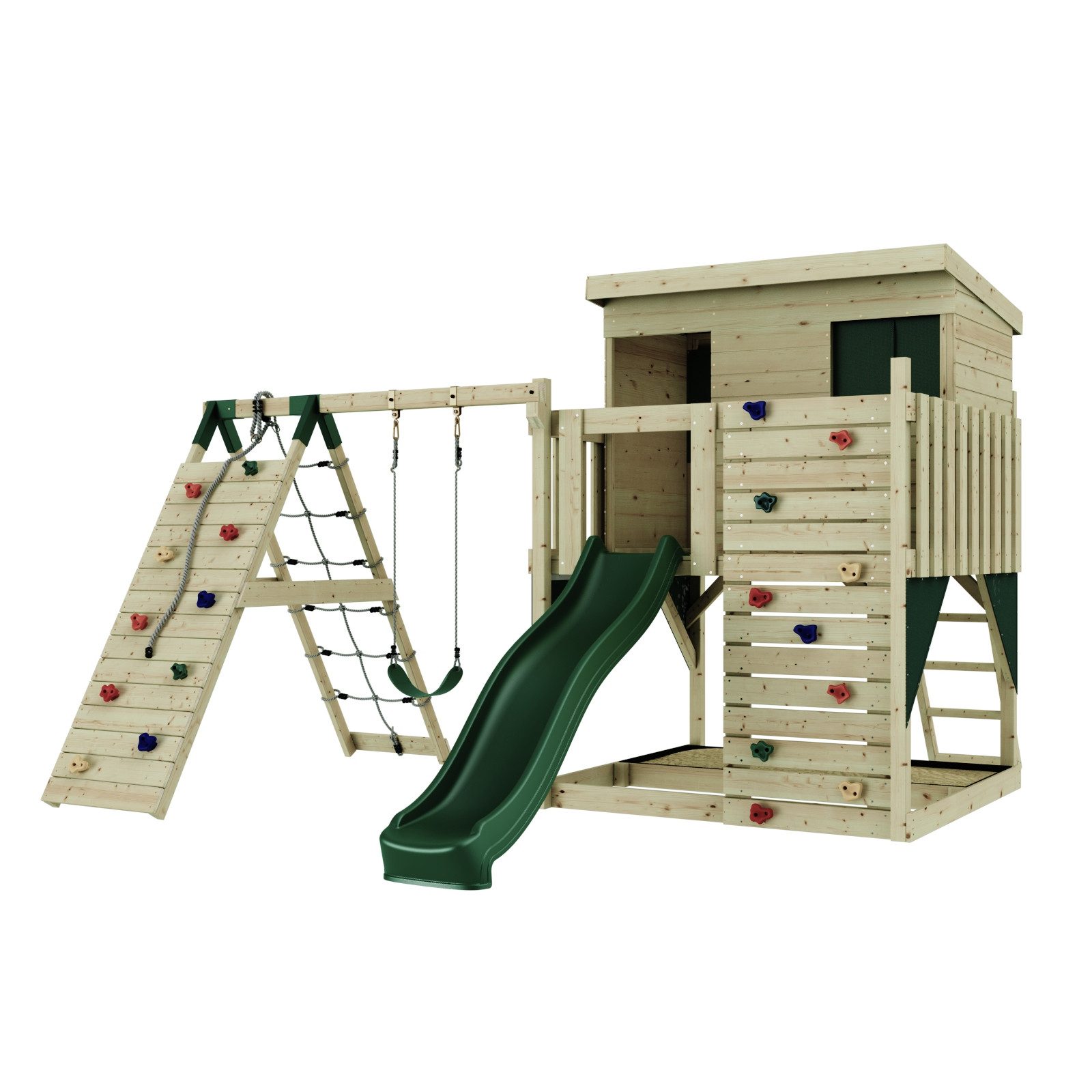 Erlebe das aufregende Spieluniversum des OutdoorToys Spielturms Emil! Das Spielhaus dient nicht nur als gemütlicher Rückzugsort, sondern auch die Schaukel und die Kletterwand lassen die Herzen kleiner Abenteurer höherschlagen. Der OutdoorToys Spielturm "Emil" - wo Spaß und Entspannung Hand in Hand gehen! Der Bereich unter dem Spielturm kann als Sandkasten genutzt werden. , Stabile Konstruktion aus unbehandeltem Holz Modernes Spielhaus Spritzgegossene Wellenrutsche Aufstiegsleiter auf die Plattform Höhenverstellbare Schaukelseile Pulverbeschichtete &, verzinkte Schaukelaufhängungen , Produktdetails des OutdoorToys Spielturms: Einzelschaukel 50 kg Maximalgewicht Длина: 396 ,cm Höhe: 260 ,cm Breite: 415 ,cm 120 cm Plattformhöhe 220 cm Rutschenlänge Farbe: Altrosa Ausführung: Kinderschaukel Sicherheitshinweise: Nicht für Kinder unter 3 Jahren geeignet Nur für den Haus-/Privatgebrauch geeignet Benutzung nur unter unmittelbarer Aufsicht von Erwachsenen Montagehinweise: Das Holz ist nicht vorgebohrt, eine vollständige Anleitung liegt bei der Lieferung bei. Für die Befestigung des Artikels sind Bodenanker notwendig. Diese kannst du hinzufügen, nachdem das Produkt in den Warenkorb gelegt wurde. Alternativ findest du unsere Bodenankersets unter Upgrades &, Zubehör. Benutzungshinweis: Dieses Produkt wurde in Übereinstimmung mit der Spielzeugsicherheitsverordnung DIN EN 71 entworfen und hergestellt. Все angegebenen Maße und gezeigten Farben können geringfügig abweichen.