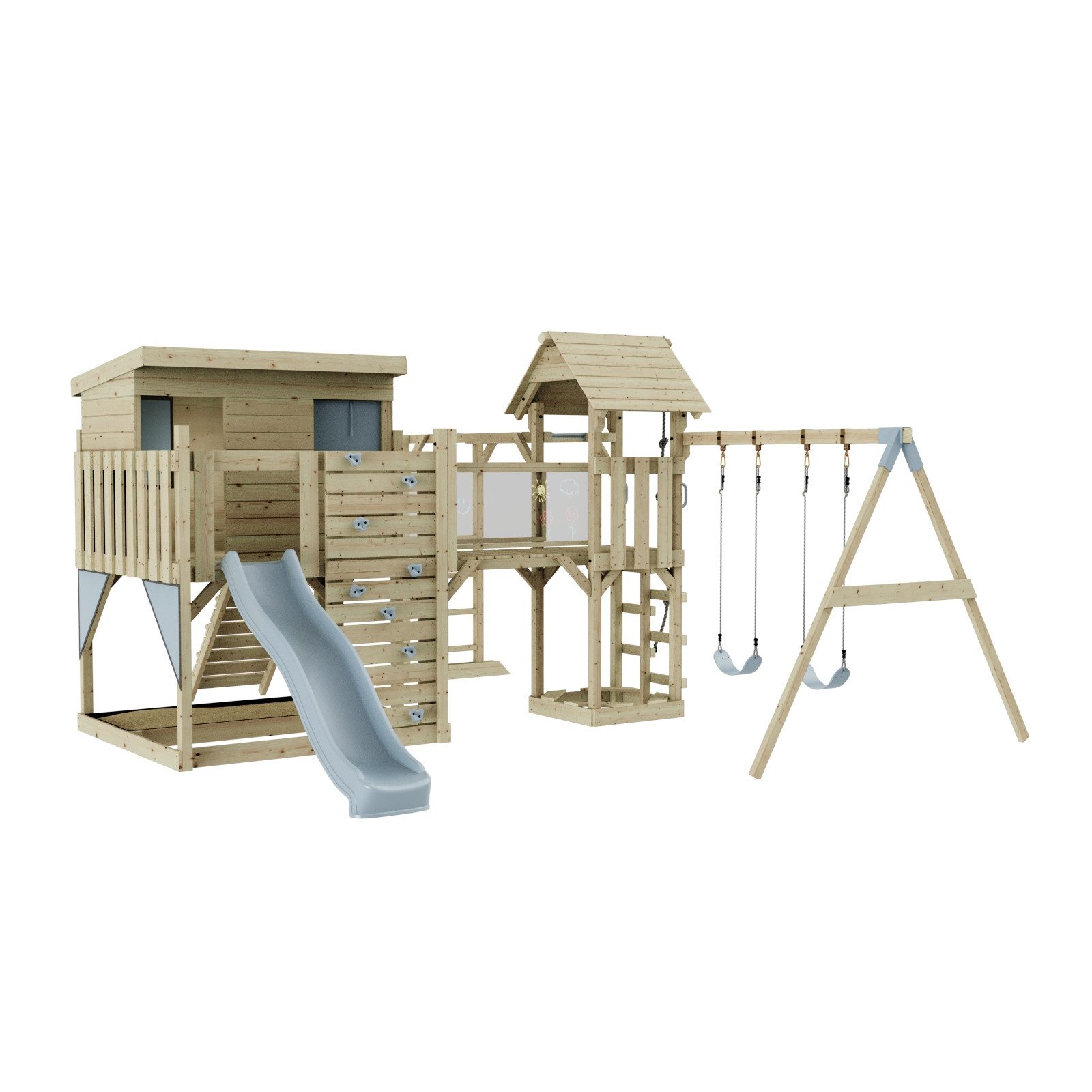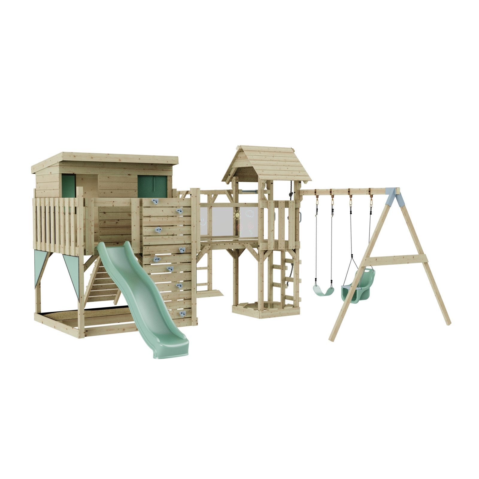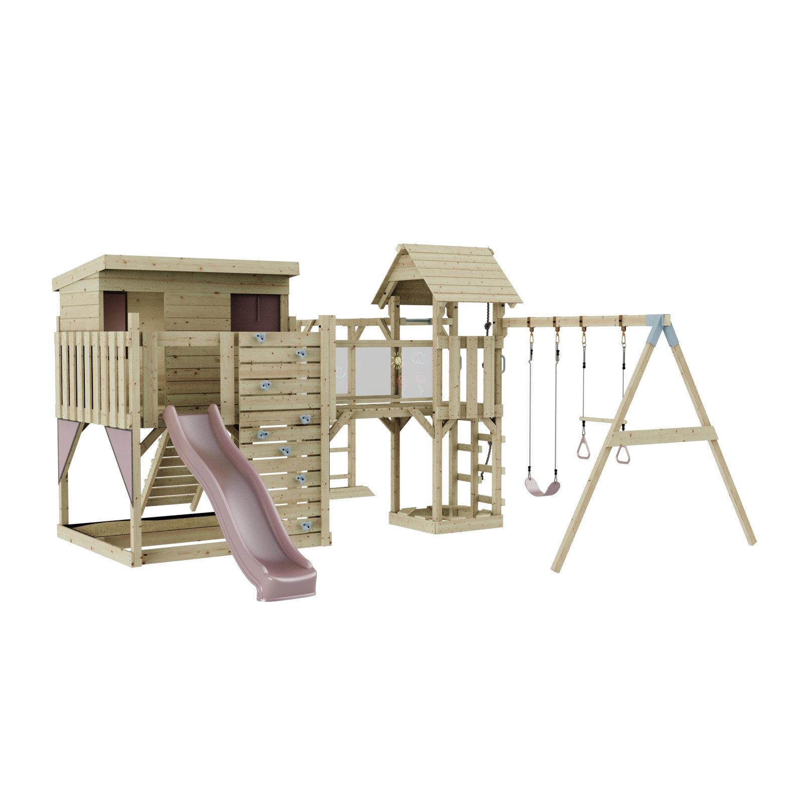 Willkommen im zauberhaften Spielreich des OutdoorToys Spielturms "Johanna"! Hier trifft Gemütlichkeit auf Action, denn neben dem kuscheligen Spielhaus gibt es unendlich viele Möglichkeiten zum Rutschen, Schaukeln und klettern. Die Doppelschaukel sorgt dafür, dass Geschwister gemeinsam spielen können oder mit Freunden in aufregende Abenteuer starten können.