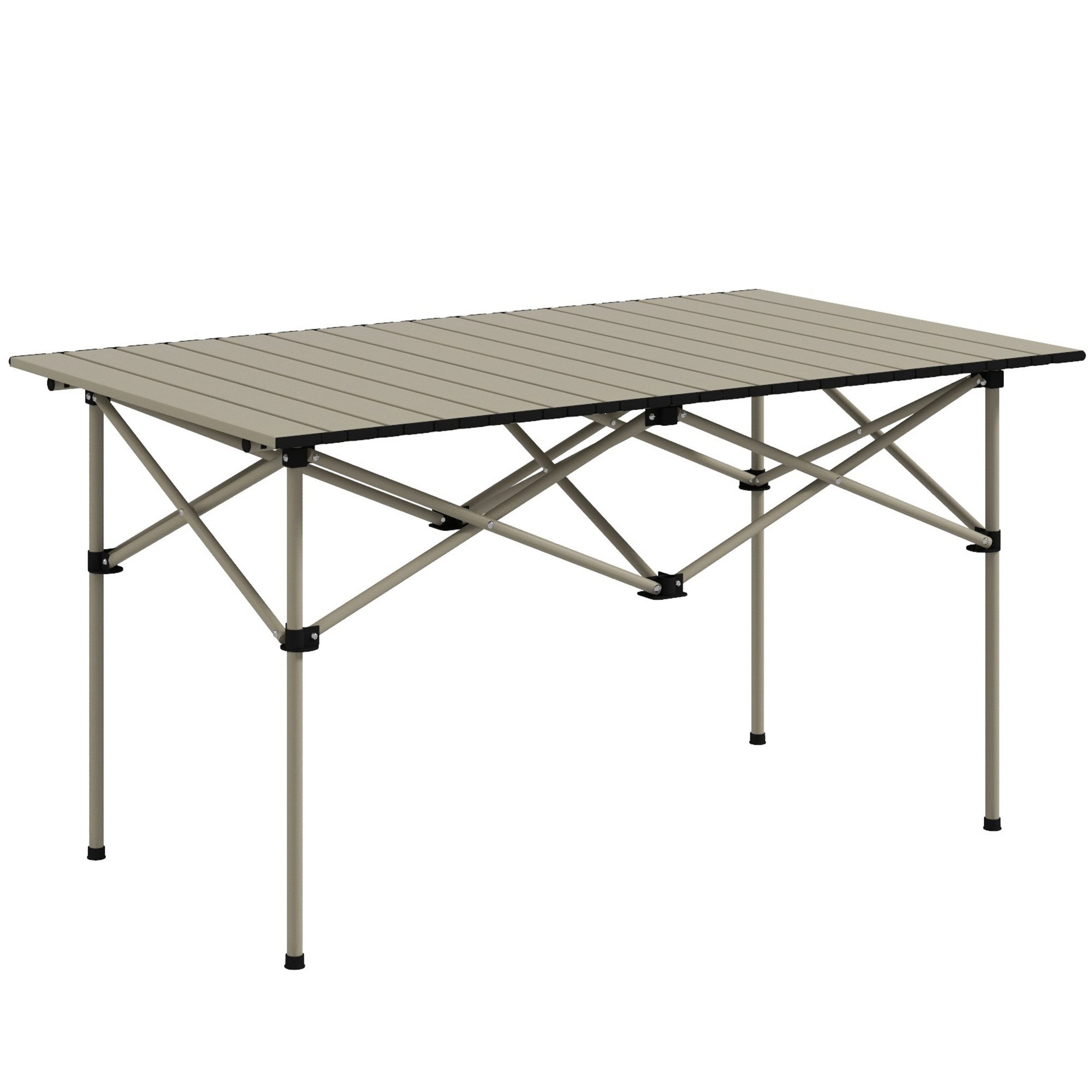 ● Tischplatte zum Aufrollen und faltbarer Rahmen: einfach aufzubauen und zu verstauen ● Tragetasche inklusive: leicht mitzunehmen bei Outdoor-Abenteuern und Ausflügen ● Pulverbeschichtetes Aluminium macht den Klapptisch robust und widerstandsfähig ● 'X' oberhalb des Rahmens für erhöhte Stabilität und Unterstützung ● 95 x 55 cm große Tischplatte bietet Platz für zwei Personen. Lamellen helfen, Wasseransammlungen zu verhindern ● Fußpolster des Klapptisches schützen den Boden vor leichten Markierungen und Kratzern ● Maximale Belastung 30 kg, Montage erforderlich.