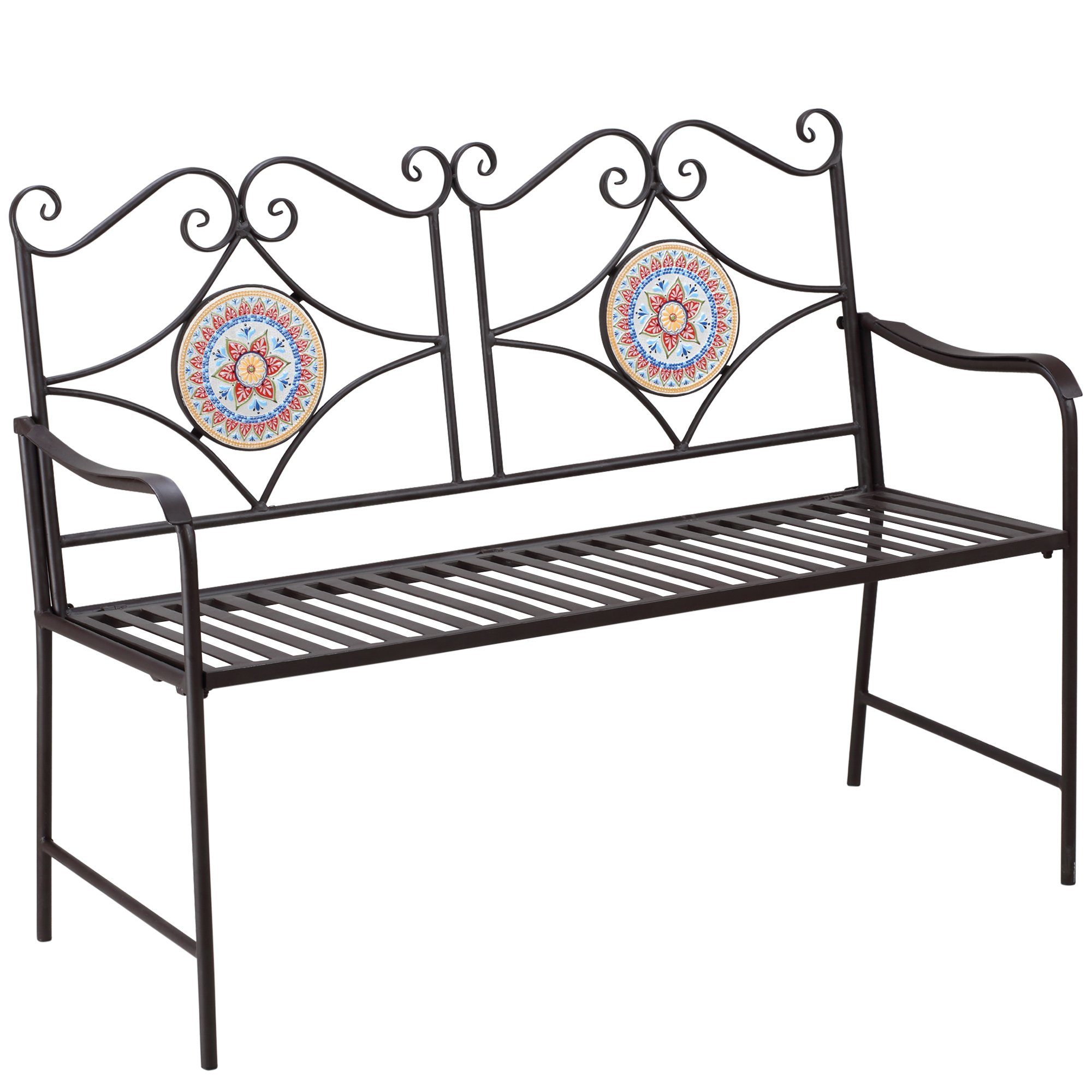 ● Diese Gartenbank verleiht Ihrem Außenbereich einen Vintage-Chic ● Die Bank besteht aus wetterbeständigen Metall und kommt mit einem schönen Mosaikmuster ● Zwei Armlehnen und eine stabile Rücklehne machen diese Bank zu einem gemütlichen Ort für eine Unterhaltung ● Die robuste Konstruktion bietet 2 Personen Platz zum Sitzen und trägt bis zu 220 kg Gewicht ● Das Gitter sieht nicht nur schön aus, sondern trocknet auch schnell an regnerischen Tagen ● Montage erforderlich