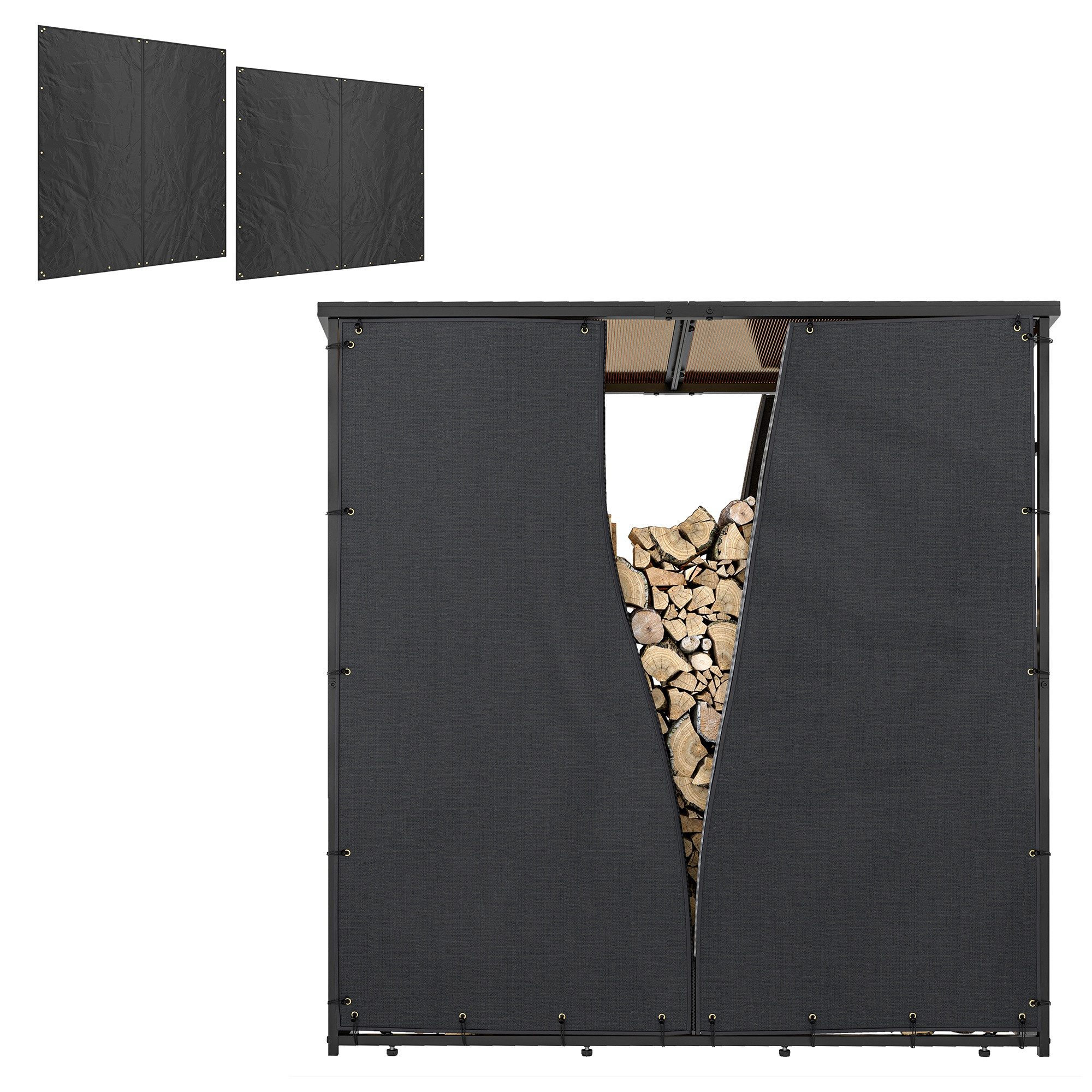 ● 2 x Abdeckung für Brennholzregal ● 44 x Zugband mit Kugel
