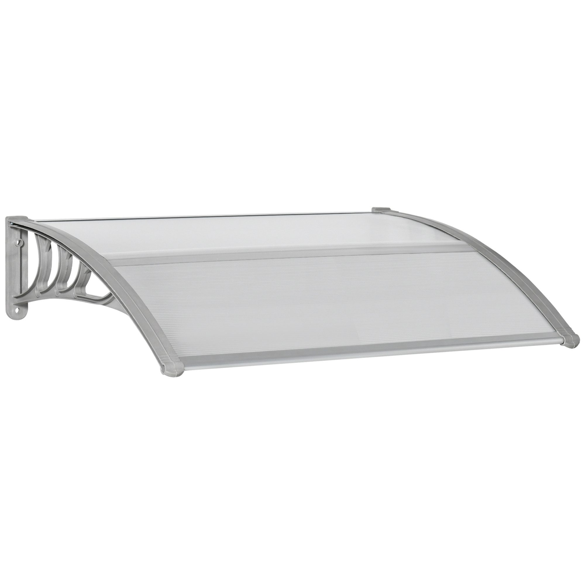 Genießen Sie diese transparente Doppel-Außenüberdachung. Durch das gewölbte Design wird optimaler Schutz vor Blendung durch die Sonne, UV-Strahlen sowie vor leichtem Schneefall, mäßiger Brise und leichten bis mittelschweren Regen geboten. Die Montage der Überdachung an der Wand ist unkompliziert und passt für die meisten Türen und Fenster. Ein vielseitiges Element, das überall im Außenbereich seinen Platz findet. Genießen Sie unbeschwert das ganze Jahr über frische Luft.