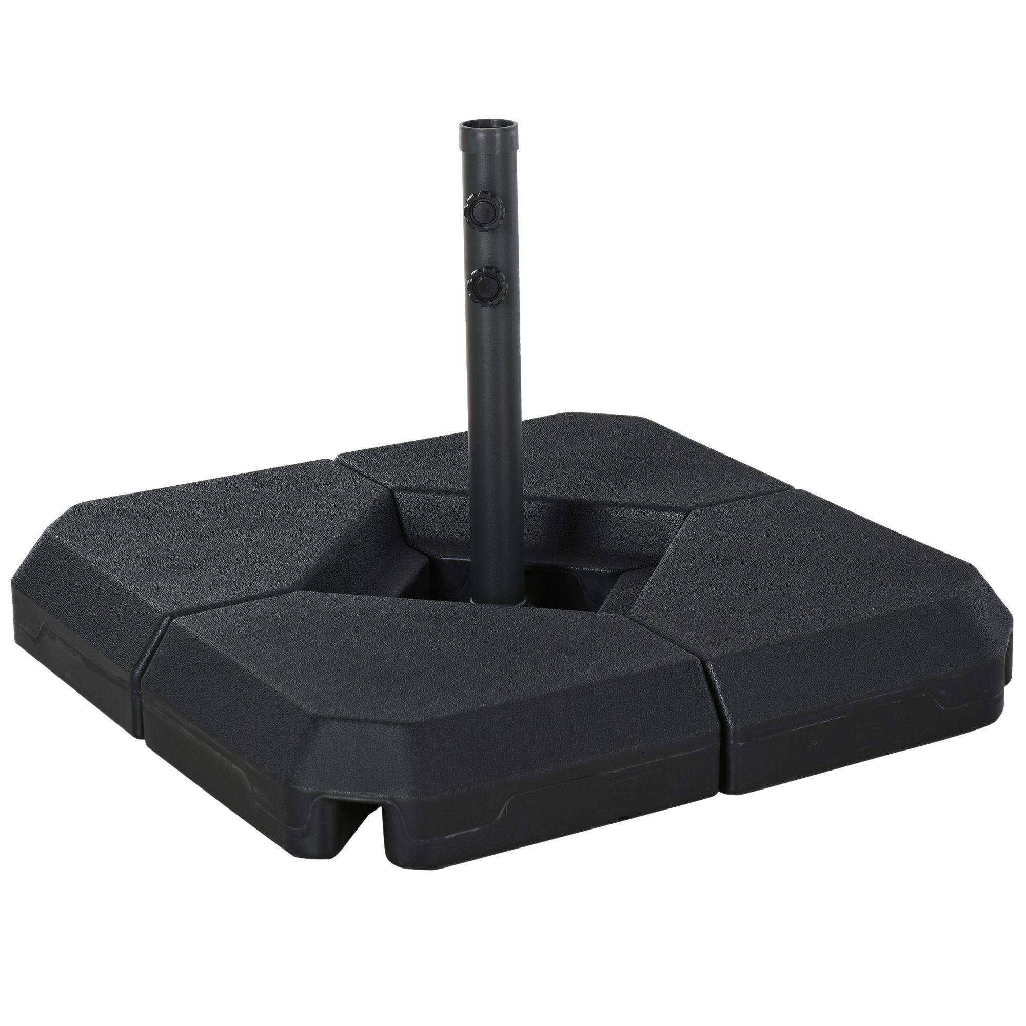 Halten Sie Ihren Sonnenschirm fest in Position. mit diesem Sonnenschirmhalter. Er besteht aus stabilem HDPE-Kunststoff aus vier Teilen, die jeweils 15 Liter Wasser oder Sand fassen. Der Ständer ist für Sonnenschirmstangen mit einem Durchmesser von 48 mm geeignet. Egal, ob Sie einen Sonnenschirm zu Hause oder in einem Geschäft aufstellen möchten, dies ist der richtige Sonnenschirmfuß für Sie.