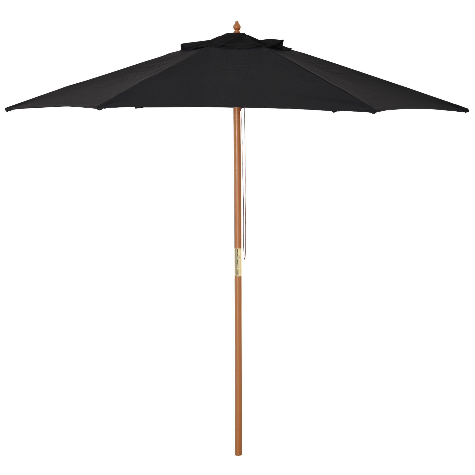 ● Material: Bambus, Tannenholz, Polyester ● Maße: Ø2,50 x H2,3 m ● Schirmstange: Ø38 mm ● Farbe: Schwarz ● Hinweis: Nur Sonnenschirm. Für optimale Stabilität wird ein 15 kg schwerer Schirmständer empfohlen