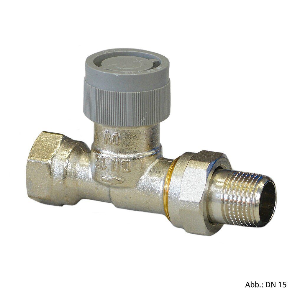 Oventrop Dynamisches Thermostatventil Baureihe AQ, DN15, Durchgang, 1183164 - Eigenschaften: Thermostatventil AQ DN 15, Durchgang Thermostatventil AQ für den automatischen Hydraulischen Abgleich Einsatz in Zweirohr-Zentralheizungs- und Kühlanlagen mit Zwangsumwälzung. Druckunabhängiges Thermostatventil mit stufenloser Voreinstellung. Der Sollwert wird mit einem Voreinstellschlüssel durch Drehen des Handrades eingestellt. Einstellbereich von außen direkt ablesbar. Bei Ventilen mit Q-Tech wird der Volumenstrom direkt eingestellt. Dieser wird auch bei schwankenden Differenzdrücken gehalten. Der Ventileinsatz ist unter Anlagendruck austauschbar und passt in alle Standard Oventrop Ventilgehäuse ab Baujahr 1999 (M30 x 1,5). Die Ventile AQ haben eine lichtgraue Bauschutzkappe. Thermostat-Gewindeanschluss: M 30 x 1,5 Material: Messing Oberfläche: Vernickelt Bereich: 2 bis 110 °C°C Nennweite: DN 15 Ausführung: Innengewinde/Außengewinde Art.-Nr.: 1183164 EAN: 4026755416145 OV1183164