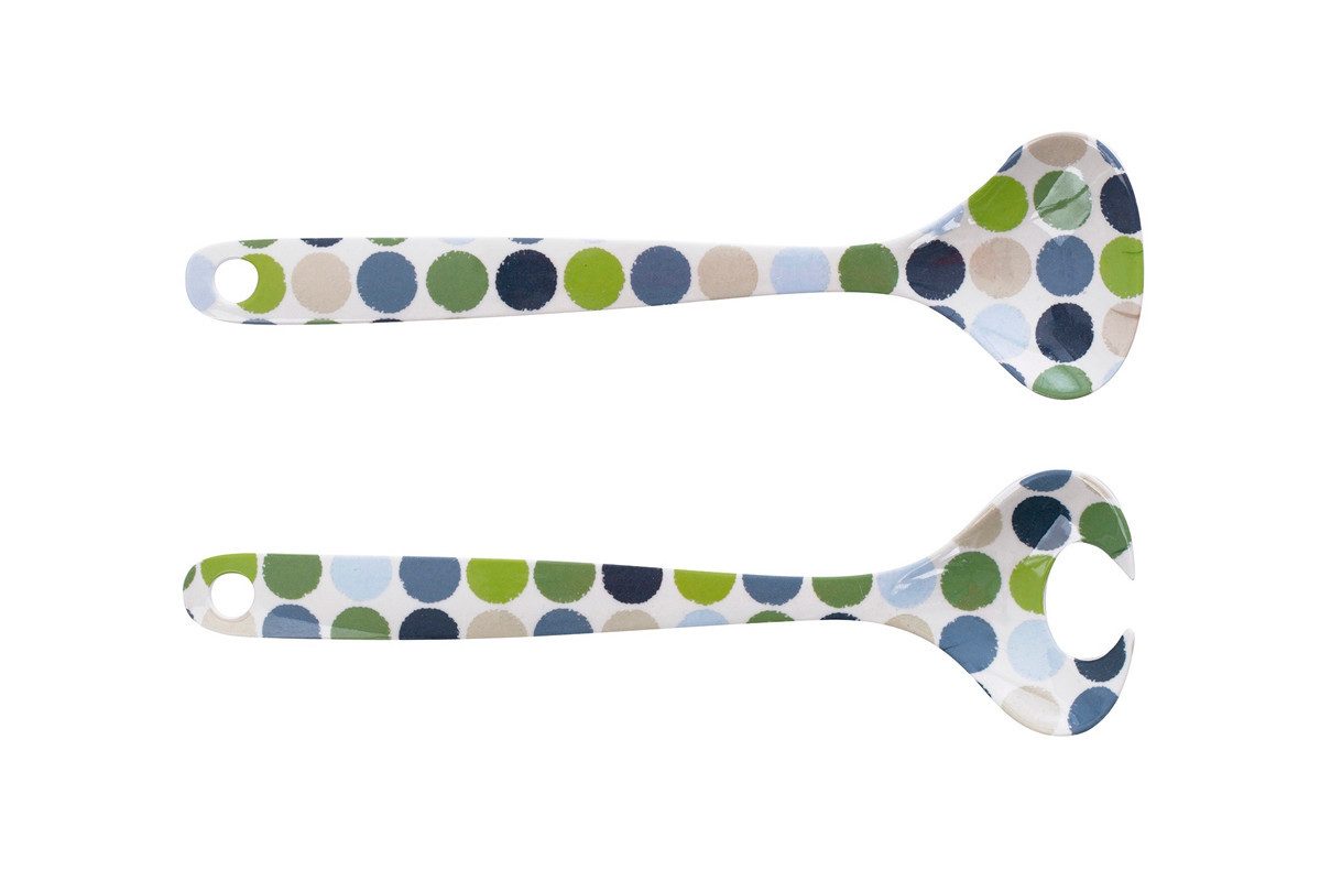 Das Melamin Salatbesteck von Overbeck And Friends in frischem, farbigen Design zum Mischen und Servieren von knackigen Salaten ist leicht und sehr robust - bestehend aus Salatlöffel & Salatgabel.