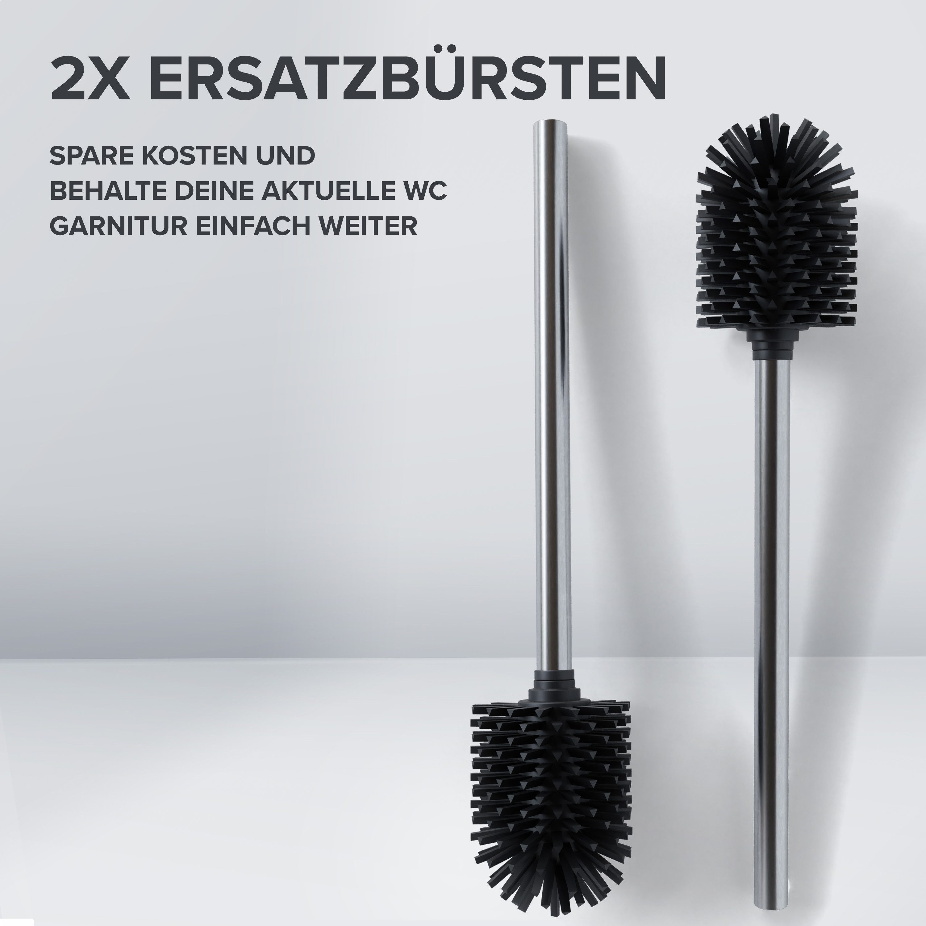 Praktisches Set: Anstatt laufend Geld in eine neue WC Garnitur investieren müssen, kannst du die Bürsten und den Bürstenkopf unserer WC Bürste einfach auswechseln