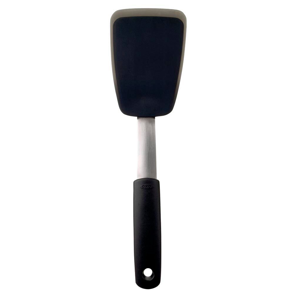INNOVATIV: Der flexible Pfannenheber von OXO Good Grips® verbindet die Kraft von Edelstahl mit den Vorteilen von Silikon.