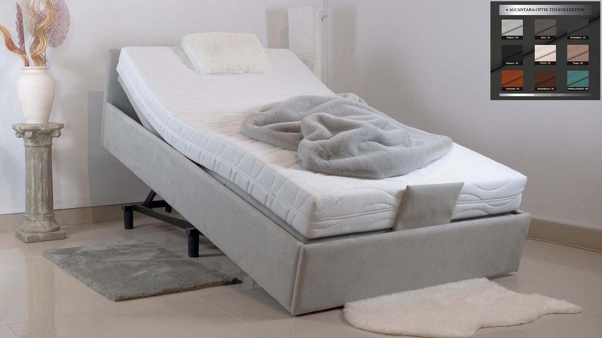 Lieferumfang | gepolstertes Pflegebett mit Höhenverstellung, Kopfteilverstellung und Fußteilverstellung ohne Matratze, freie Farbwahl nach unserer Farbpalette von Mikrofaser / Alcantara-Optik |